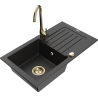 Mexen Pablo fregadero de granito de 1 cubeta con escurridor y grifo de cocina Telma, negro/oro - 6510-75-670200-50-B