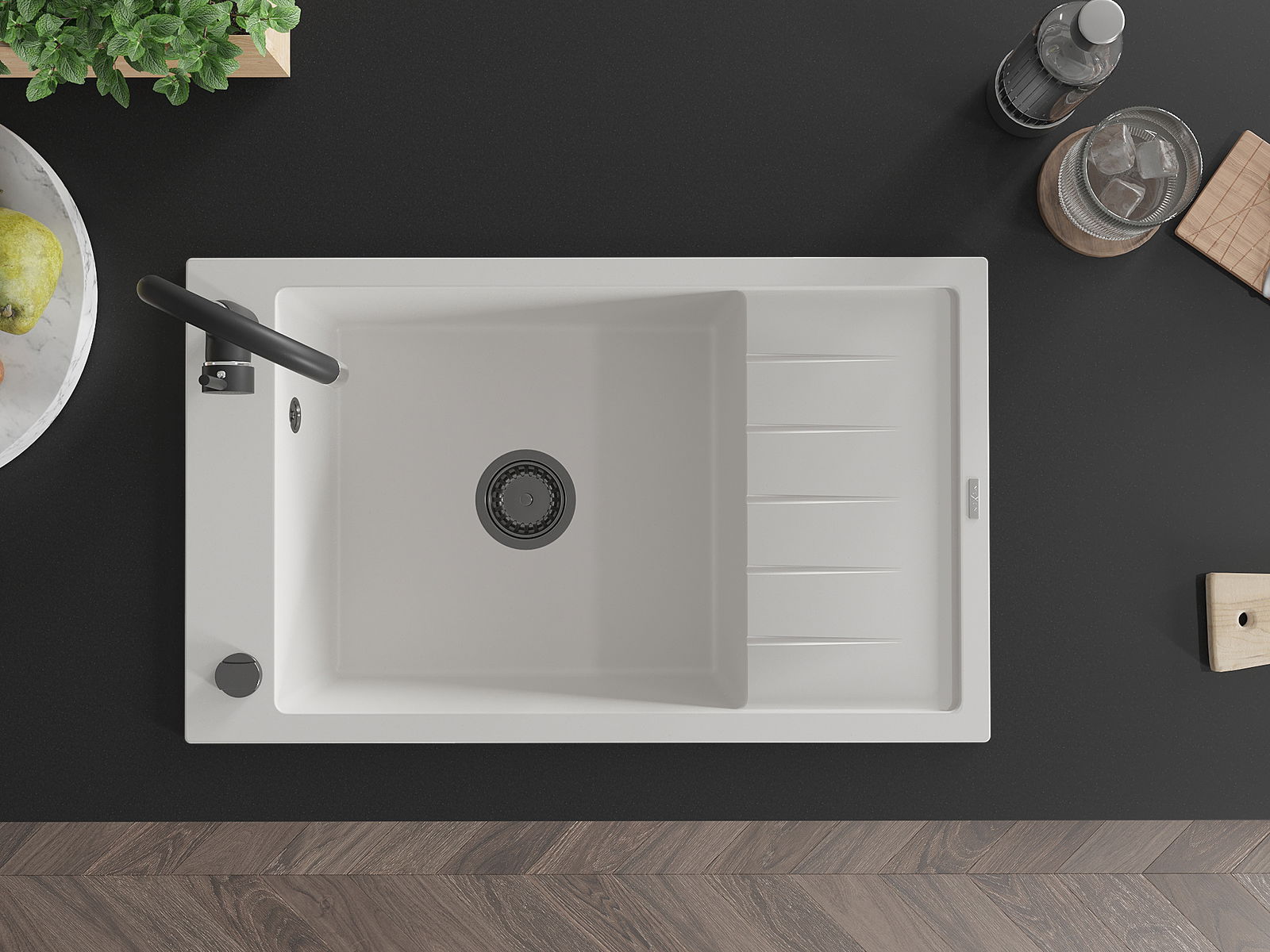 El fregadero está hecho de granito de alta calidad. Constituye un complemento elegante y, sobre todo, práctico para cualquier cocina, independientemente de su estilo. La alta calidad y durabilidad del granito aseguran un uso durante muchos años.
