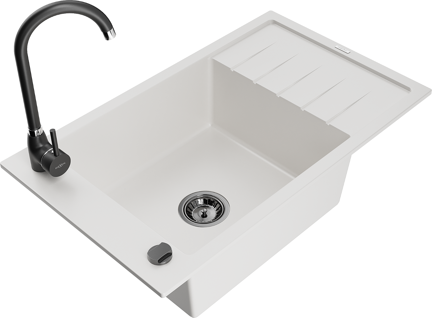 Mexen Elias fregadero de granito de 1 seno con escurridor y grifo de cocina Telma, blanco - 6511-20-670200-70