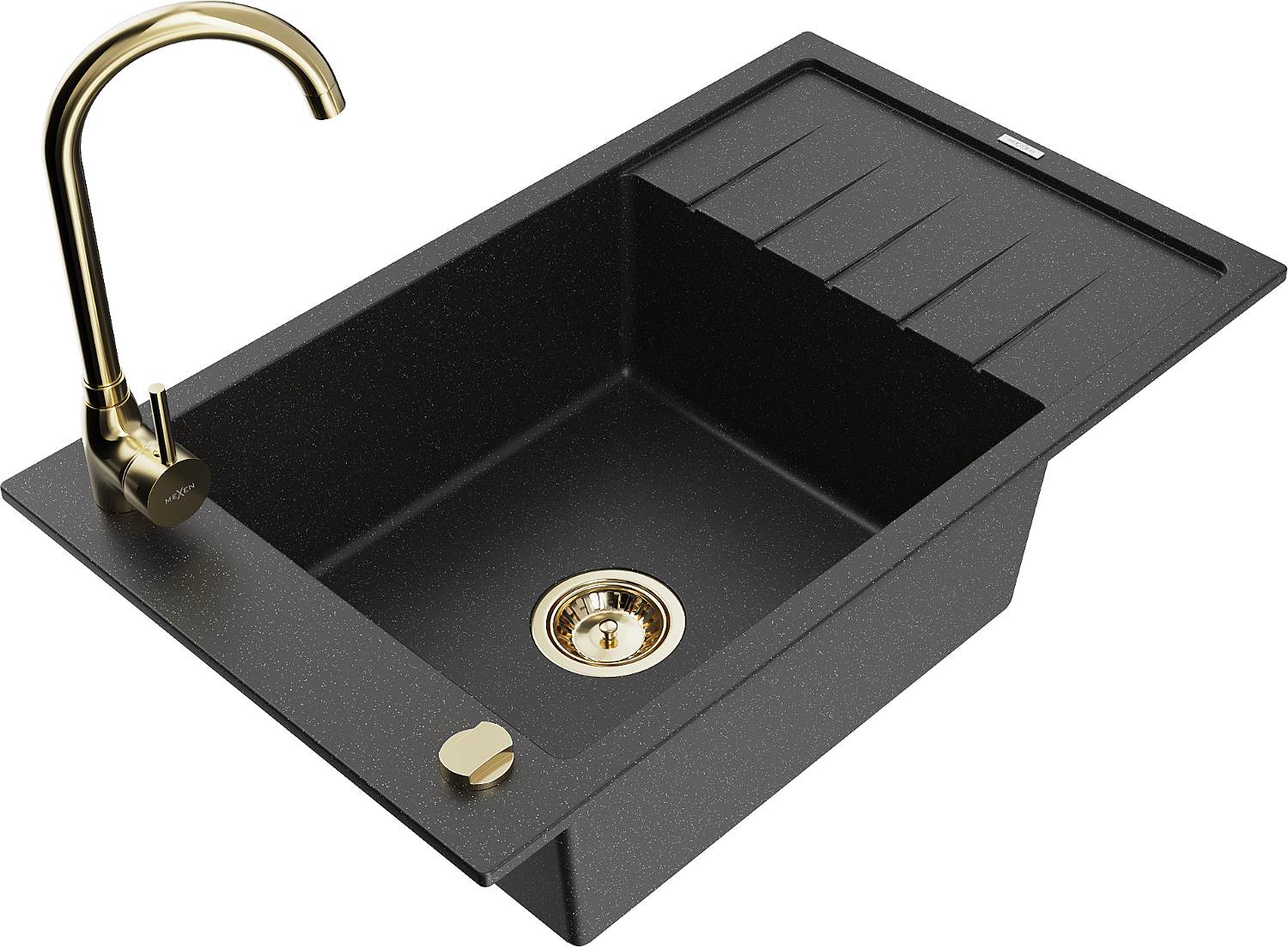 Mexen Elias fregadero de granito de 1 cubeta con escurridor y grifo de cocina Telma, negro/plata - 6511-73-670200-50