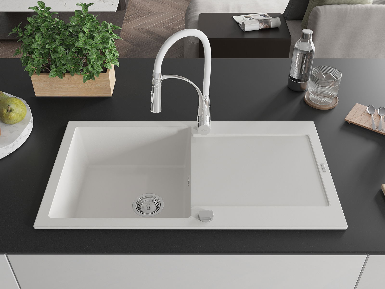 El fregadero está hecho de granito de alta calidad. Constituye un complemento elegante y, sobre todo, práctico para cualquier cocina, independientemente de su estilo. La alta calidad y durabilidad del granito aseguran un uso durante muchos años.