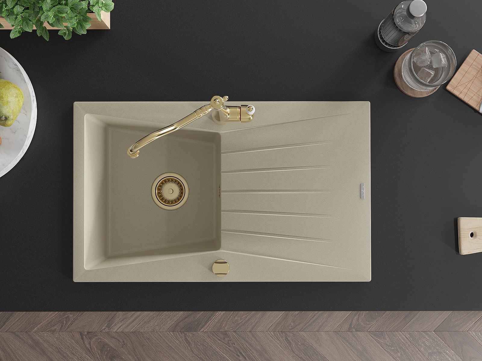 Mexen Cesar fregadero de granito de 1 seno con escurridor y grifo de cocina Carla, beige - 6514-69-670700-50
