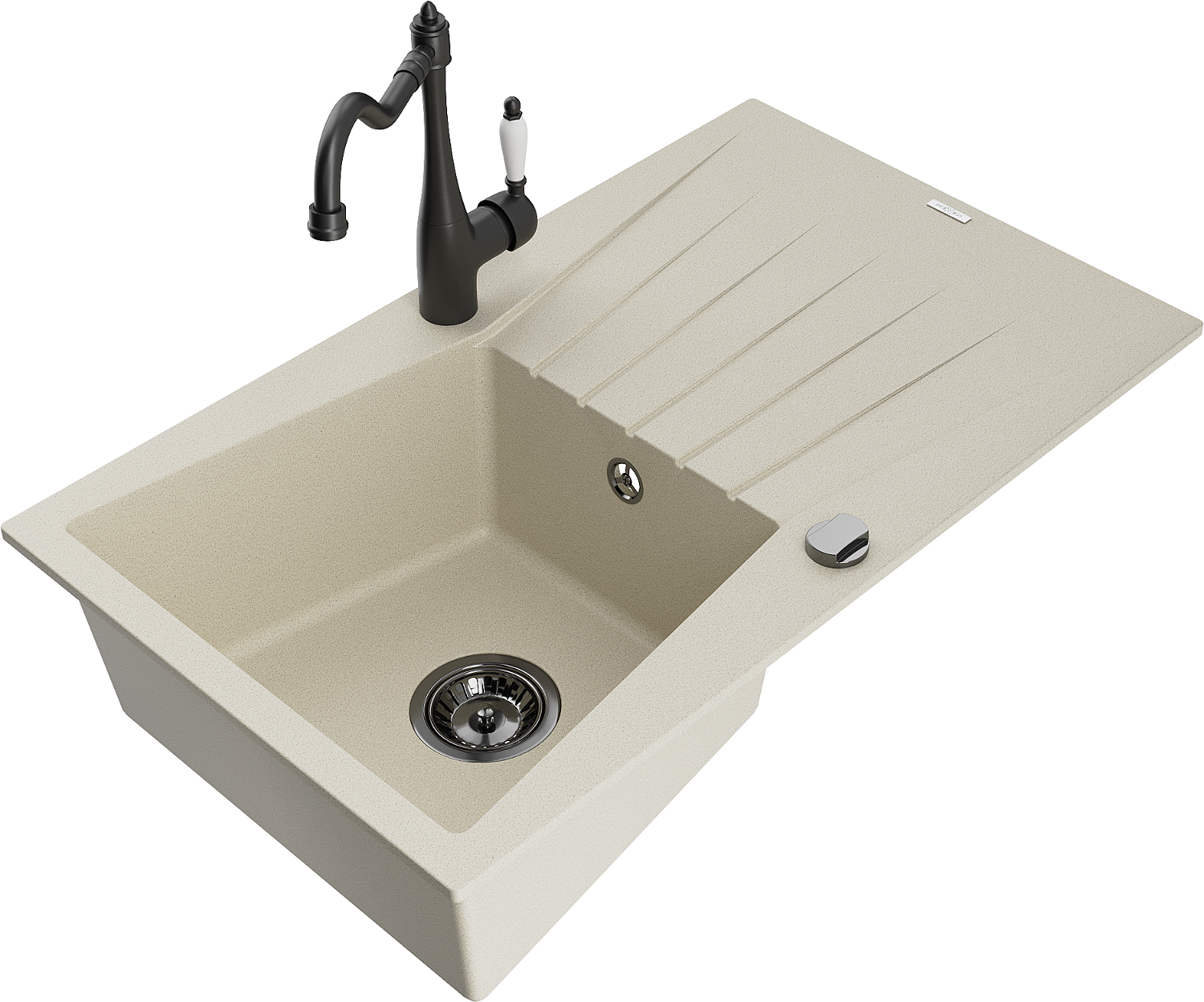El fregadero está hecho de granito de alta calidad. Constituye un complemento elegante y, sobre todo, práctico para cualquier cocina, independientemente de su estilo. La alta calidad y durabilidad del granito aseguran un uso durante muchos años.