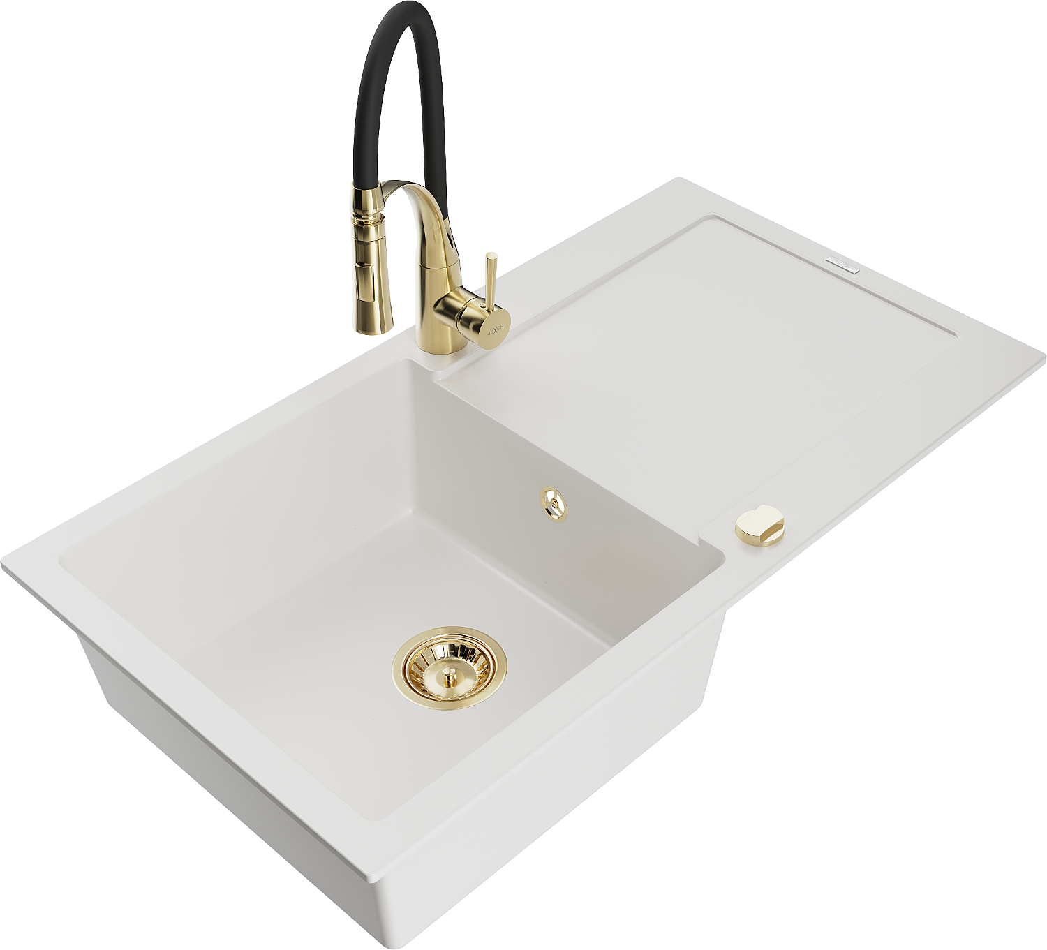 Mexen Leo fregadero de granito de 1 compartimento con escurridor y grifo de cocina Aster, blanco - 6501-20-73450-57-G
