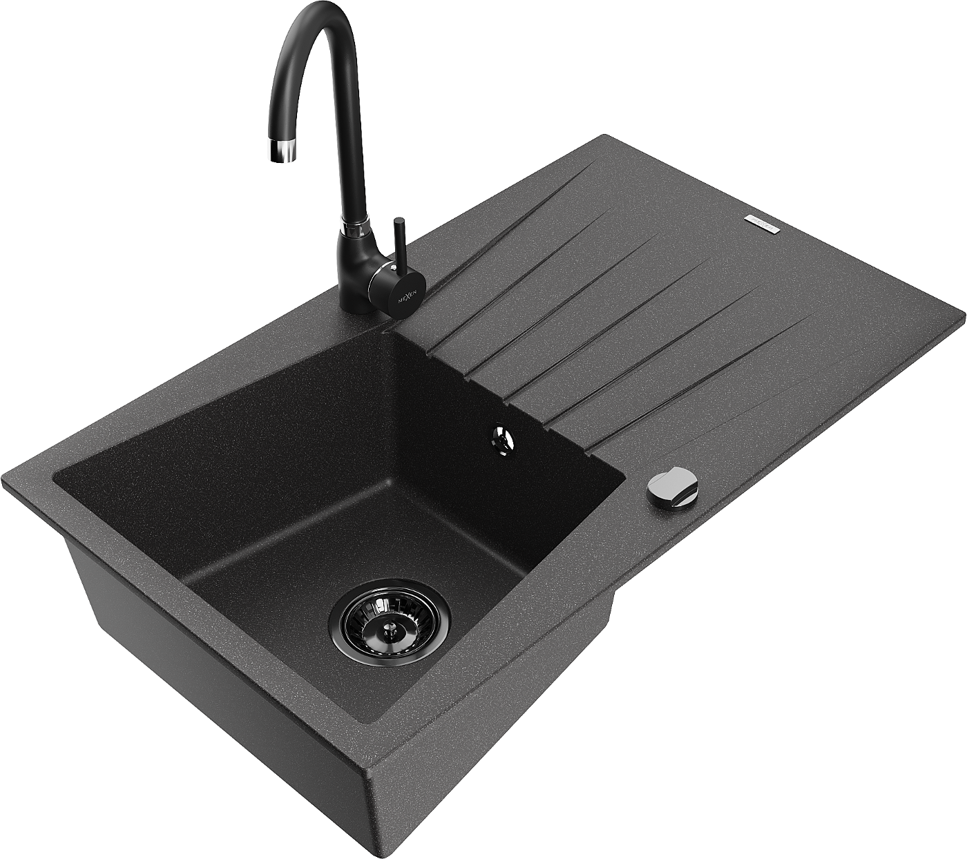 Mexen Cesar fregadero de granito de 1 cámara con escurridor y grifo de cocina Telma, negro moteado - 6514-76-670200-70-B