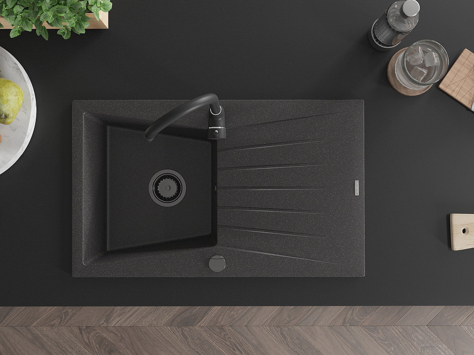 El fregadero está hecho de granito de alta calidad. Constituye un complemento elegante y, sobre todo, práctico para cualquier cocina, independientemente de su estilo. La alta calidad y durabilidad del granito aseguran un uso durante muchos años.