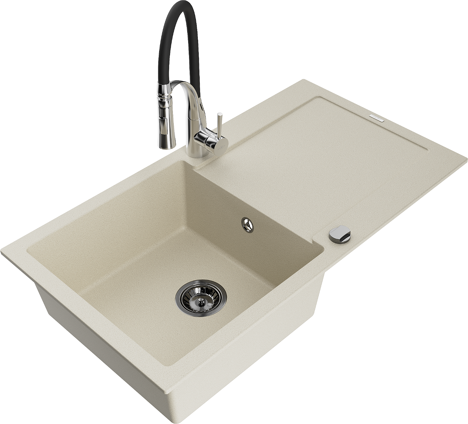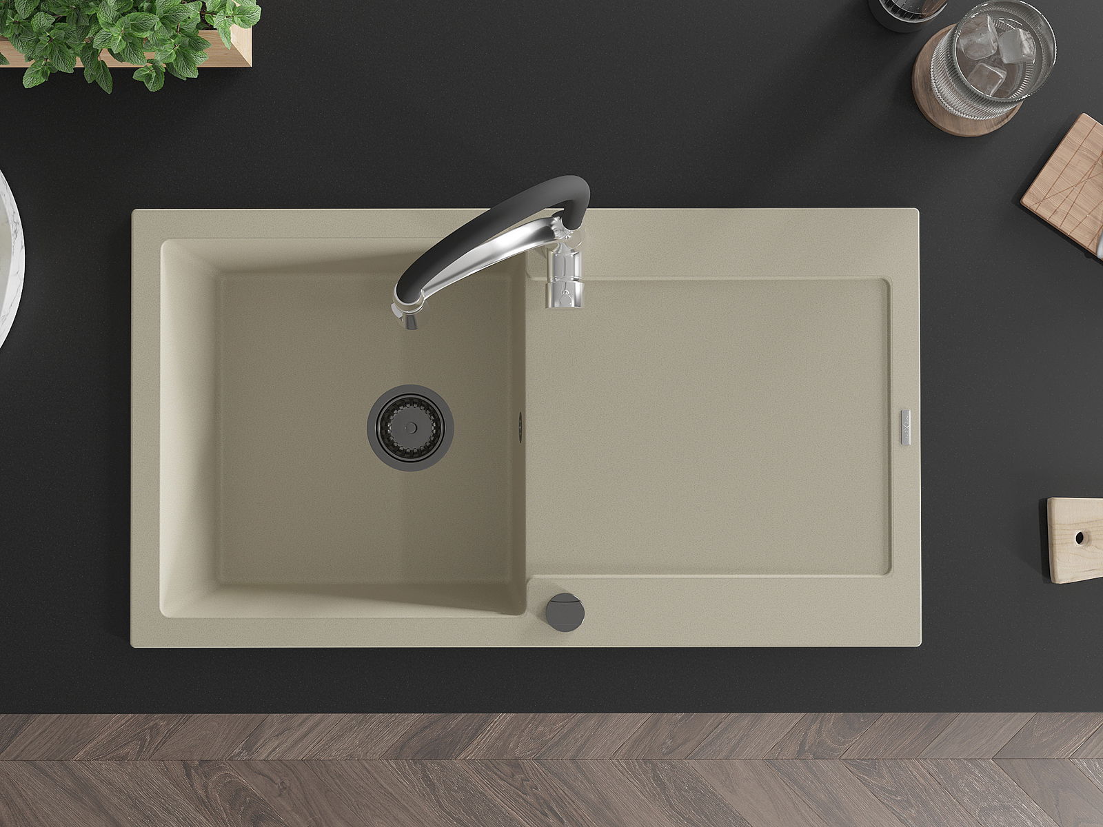 El fregadero está hecho de granito de alta calidad. Constituye un complemento elegante y, sobre todo, práctico para cualquier cocina, independientemente de su estilo. La alta calidad y durabilidad del granito aseguran un uso durante muchos años.