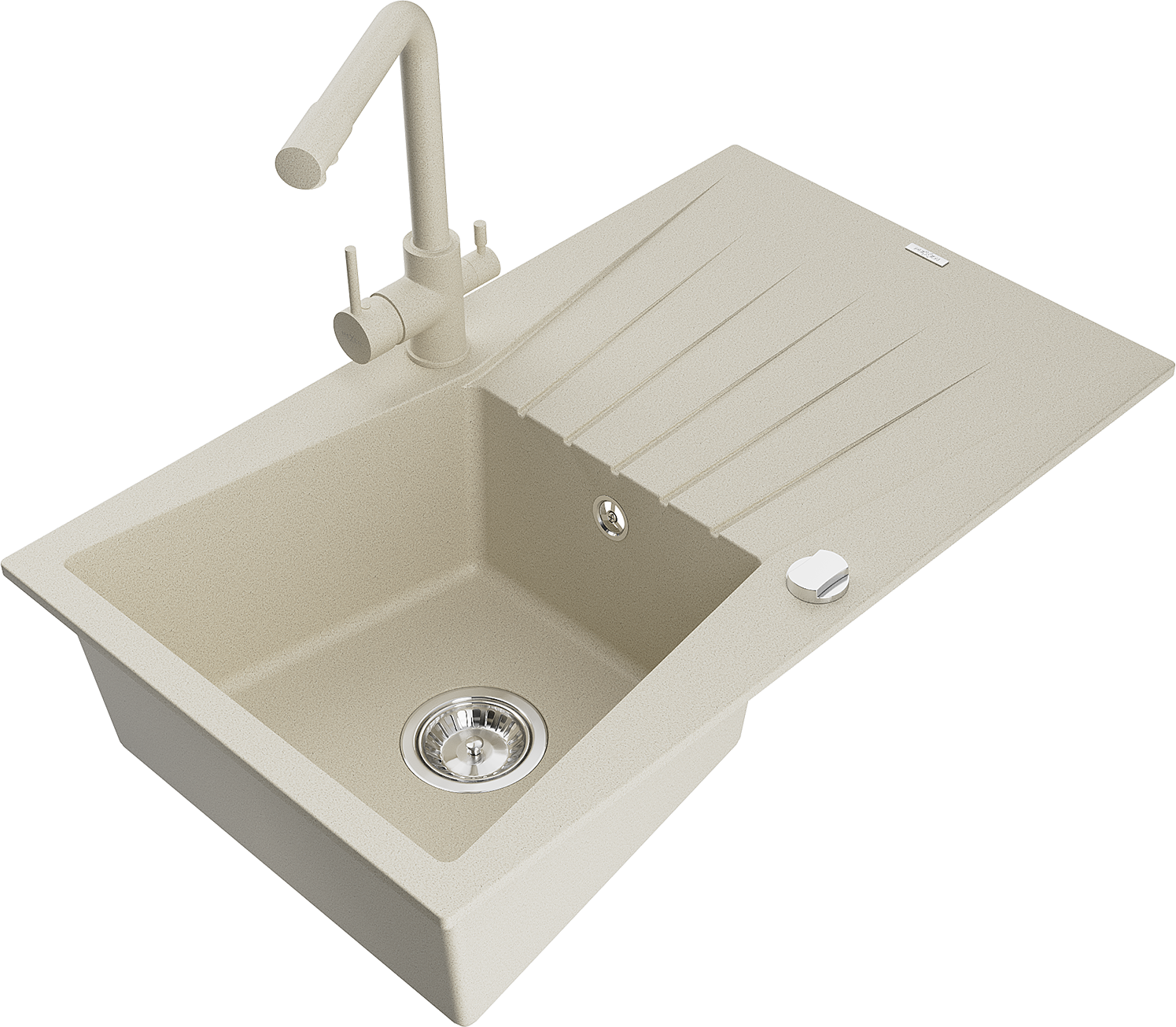 El fregadero está hecho de granito de alta calidad. Constituye un complemento elegante y, sobre todo, práctico para cualquier cocina, independientemente de su estilo. La alta calidad y durabilidad del granito aseguran un uso durante muchos años.