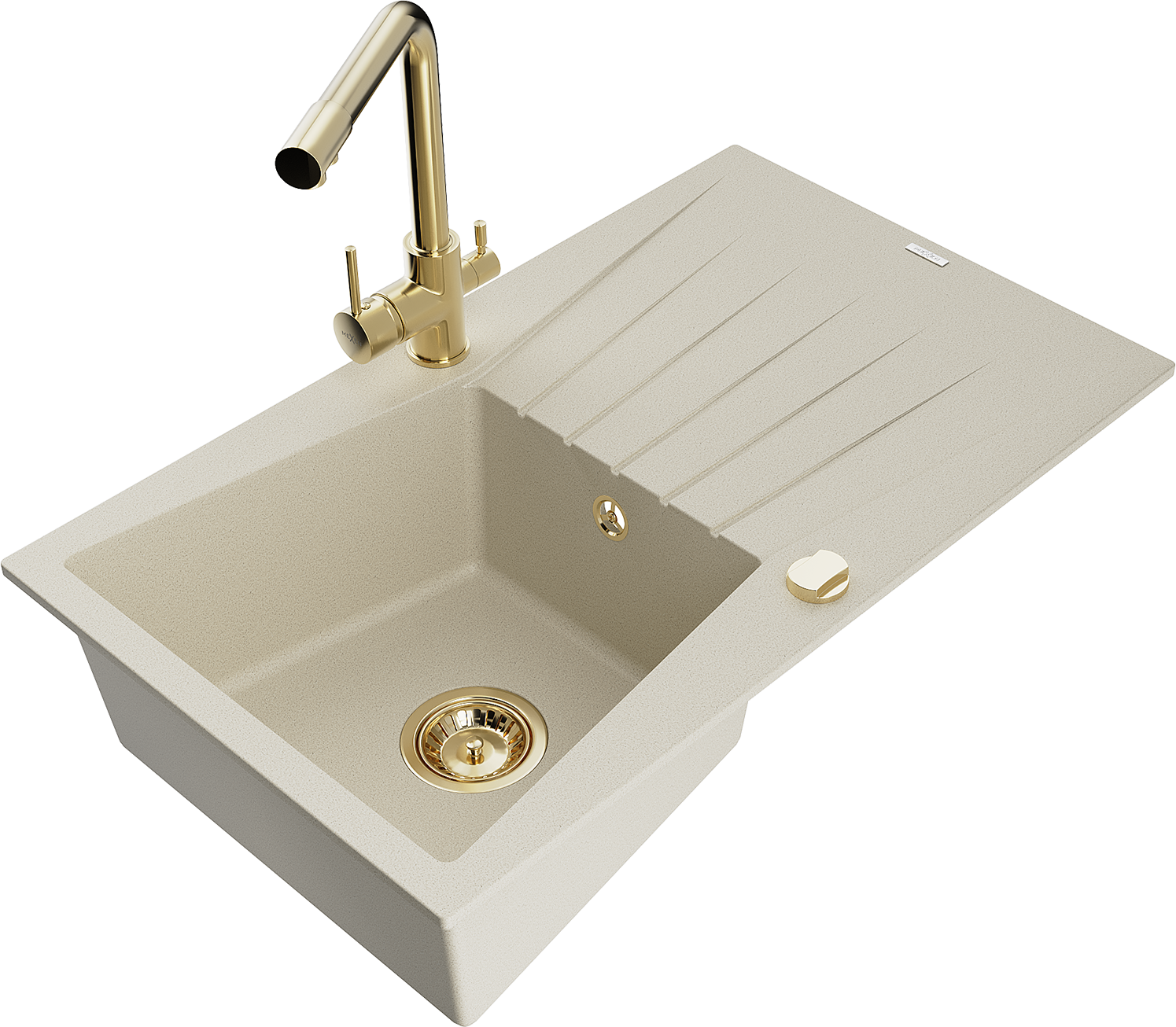 Mexen Cesar fregadero de granito de 1 cubeta con escurridor y grifo de cocina Duero, beige - 6514-69-671600-50