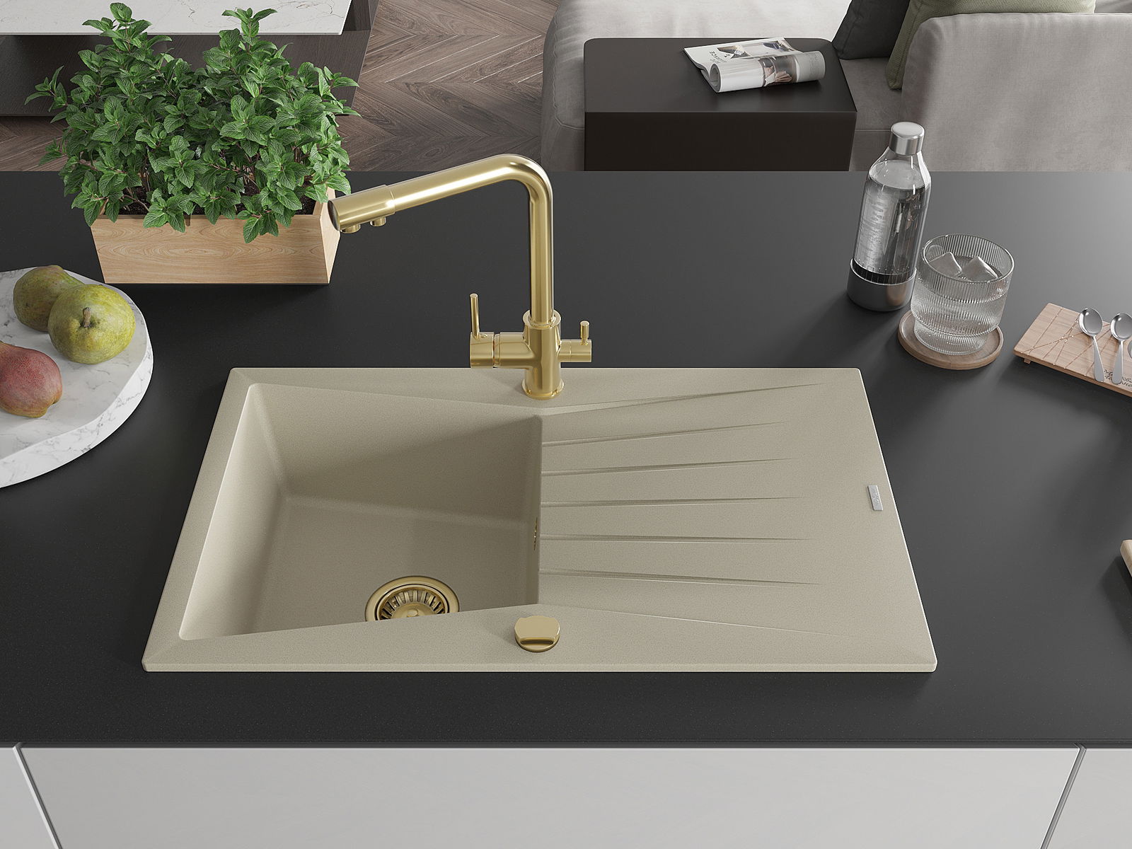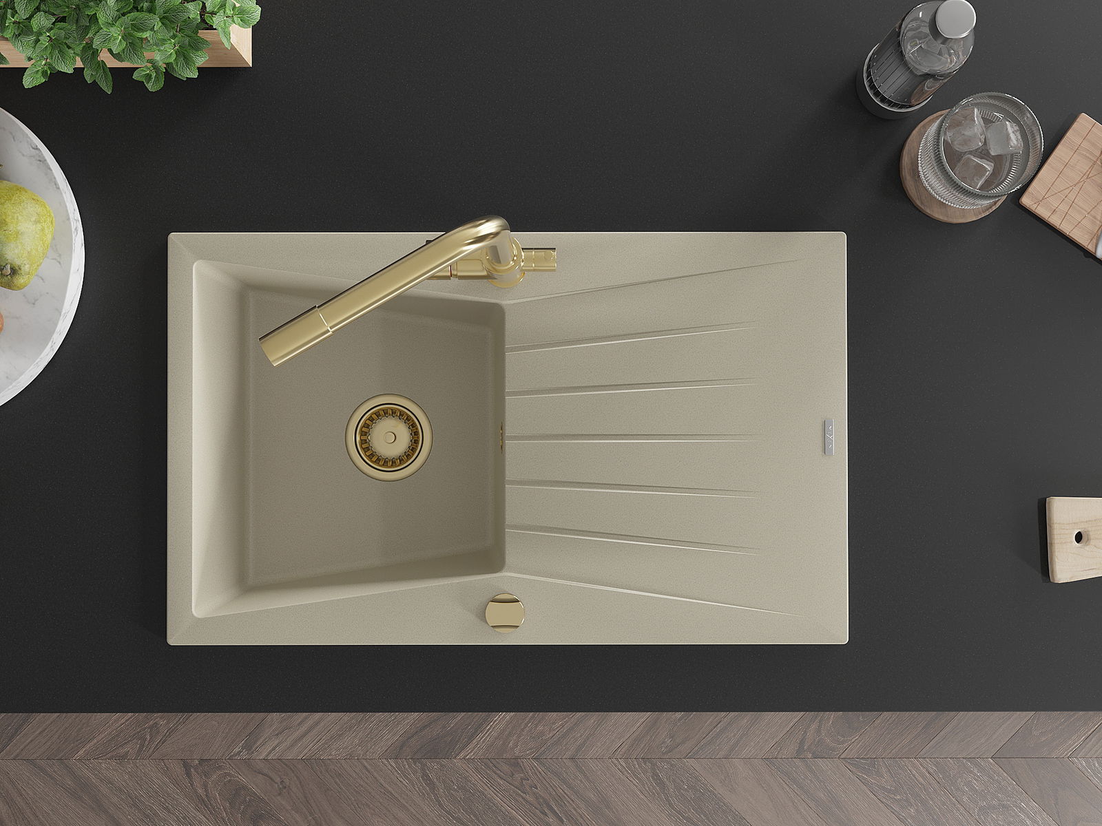 El fregadero está hecho de granito de alta calidad. Constituye un complemento elegante y, sobre todo, práctico para cualquier cocina, independientemente de su estilo. La alta calidad y durabilidad del granito aseguran un uso durante muchos años.
