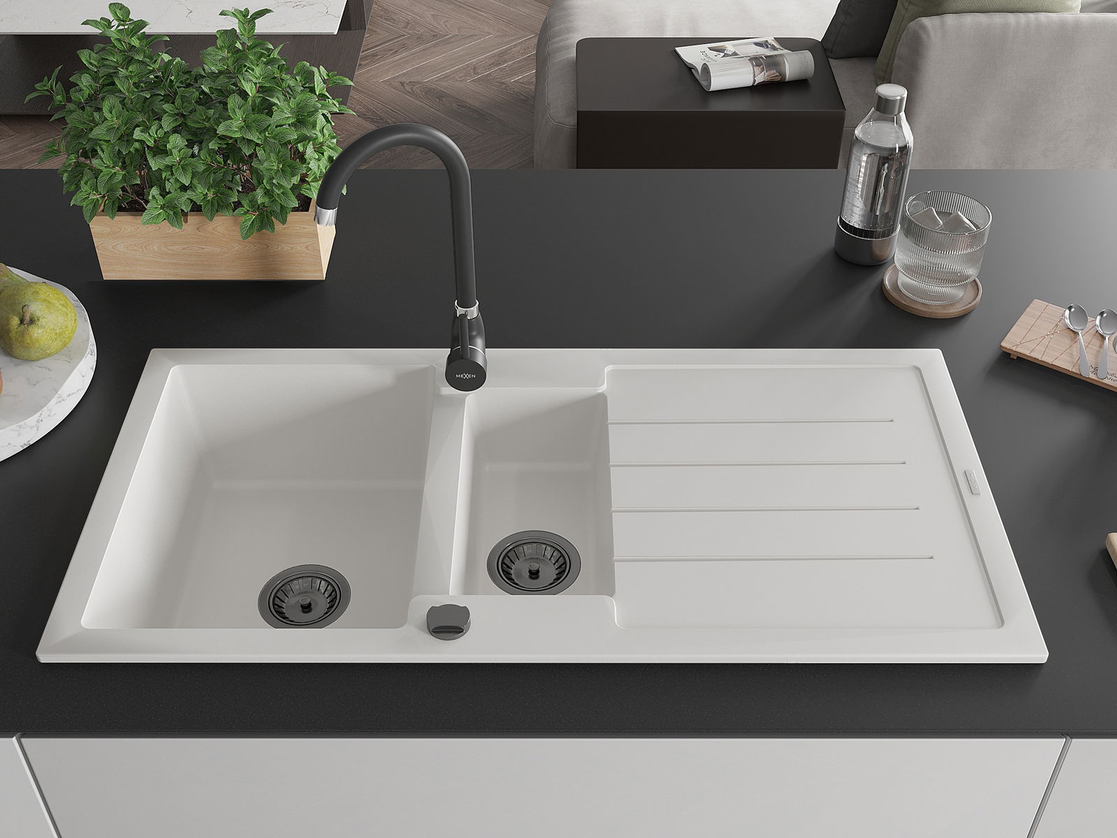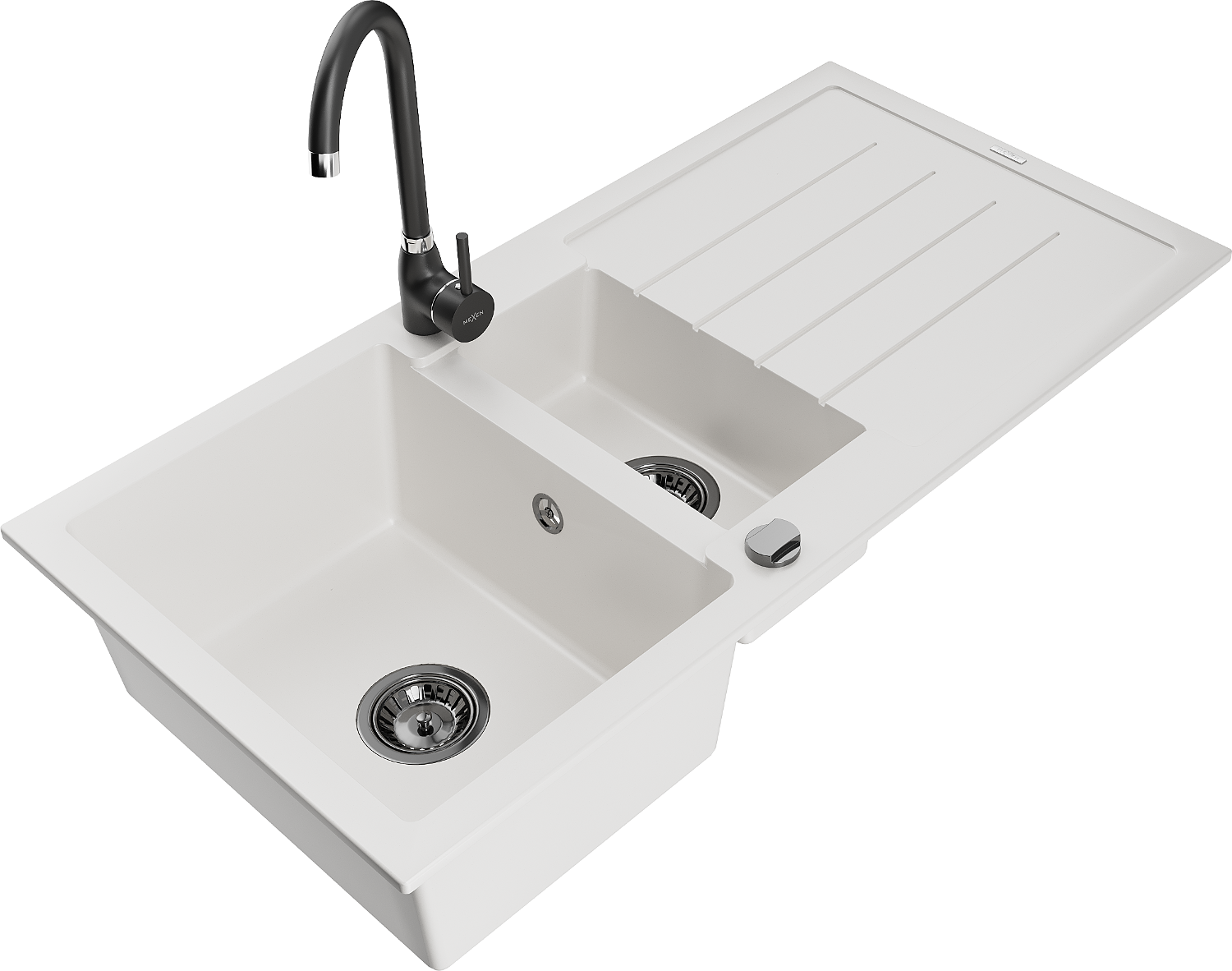 Mexen Andres fregadero de granito 1,5-comparte con escurridor y grifo de cocina Telma, blanco - 6515-20-670200-70
