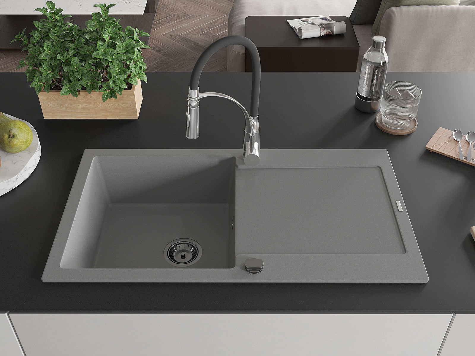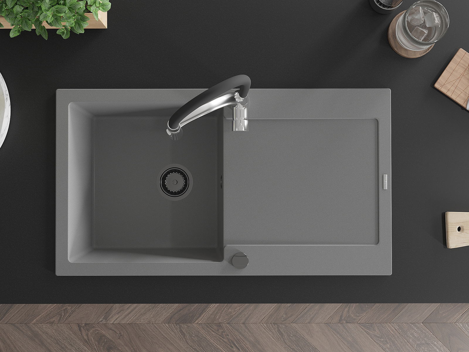 El fregadero está hecho de granito de alta calidad. Constituye un complemento elegante y, sobre todo, práctico para cualquier cocina, independientemente de su estilo. La alta calidad y durabilidad del granito aseguran un uso durante muchos años.
