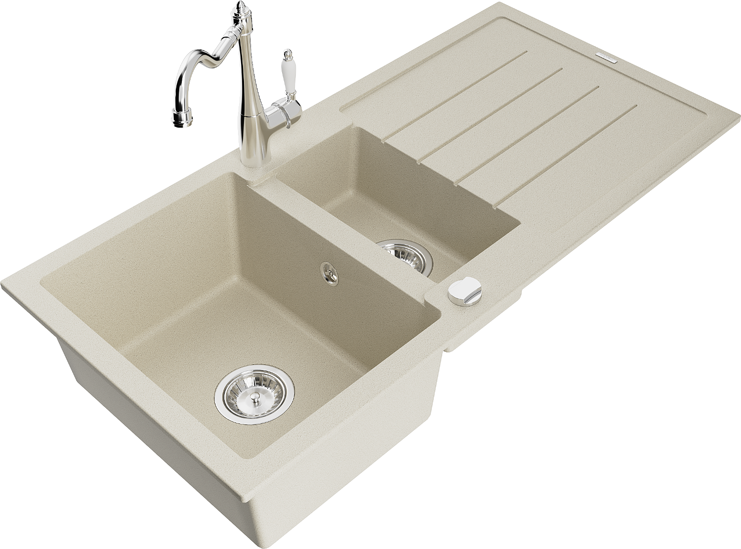 Mexen Andres fregadero de granito de 1,5 senos con escurridor y grifo de cocina Carla, beige - 6515-69-670700-00