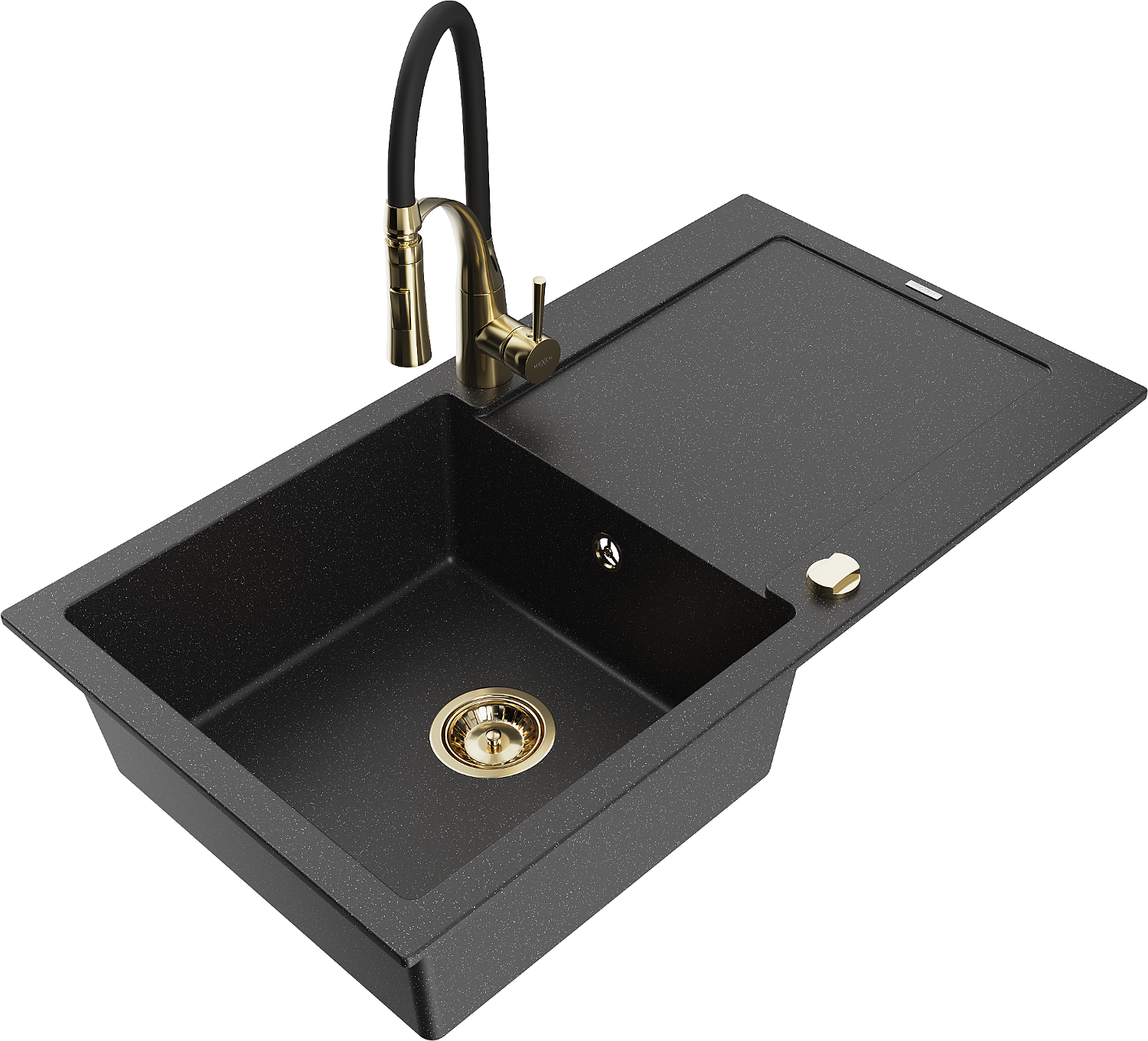 El fregadero está hecho de granito de alta calidad. Es un complemento elegante y, sobre todo, práctico para cualquier cocina, independientemente de su estilo. La alta calidad y durabilidad del granito aseguran un uso prolongado durante años.