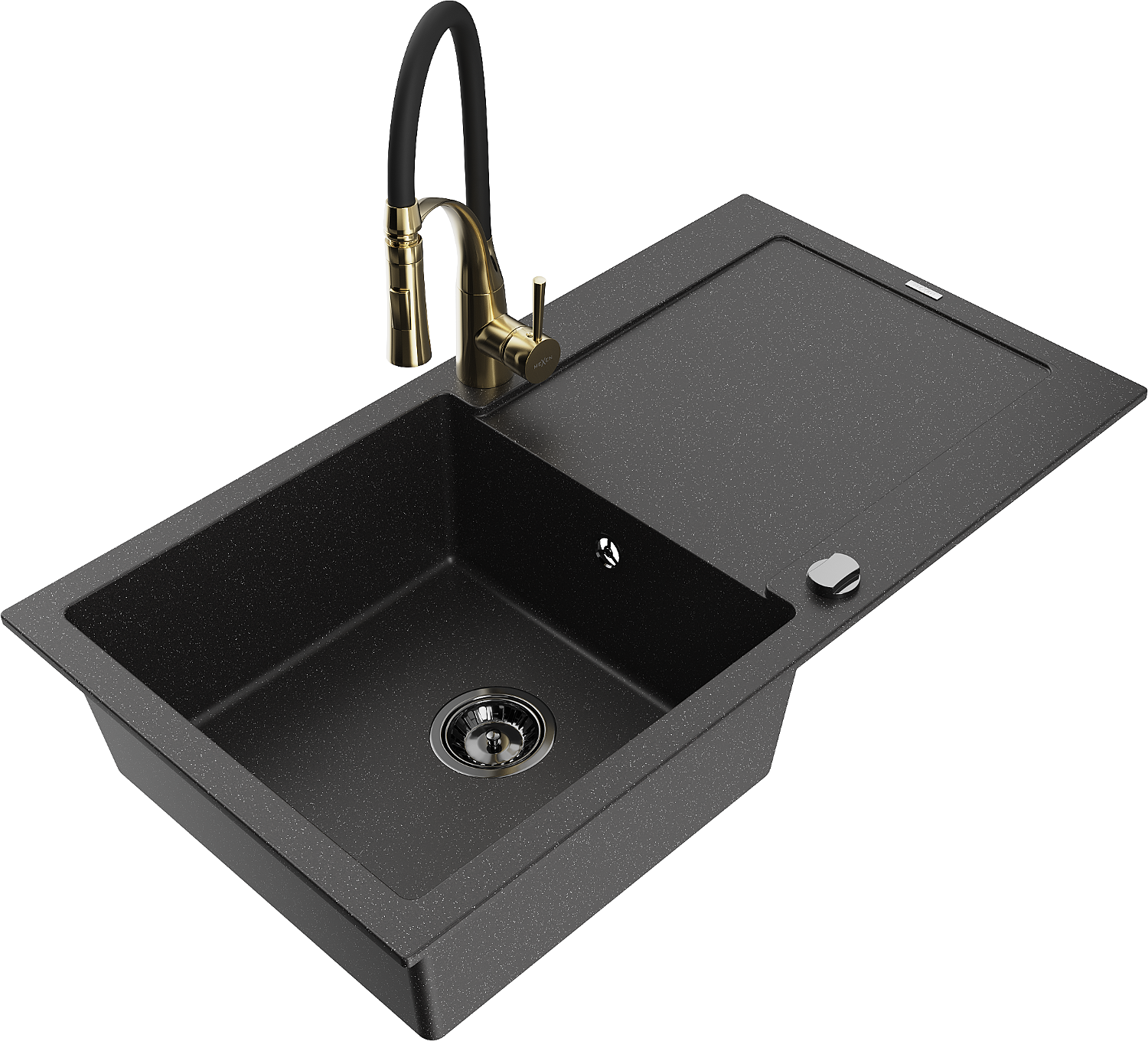 El fregadero está hecho de granito de alta calidad. Es un complemento elegante y, sobre todo, práctico para cualquier cocina, independientemente de su estilo. La alta calidad y durabilidad del granito aseguran un uso prolongado durante años.