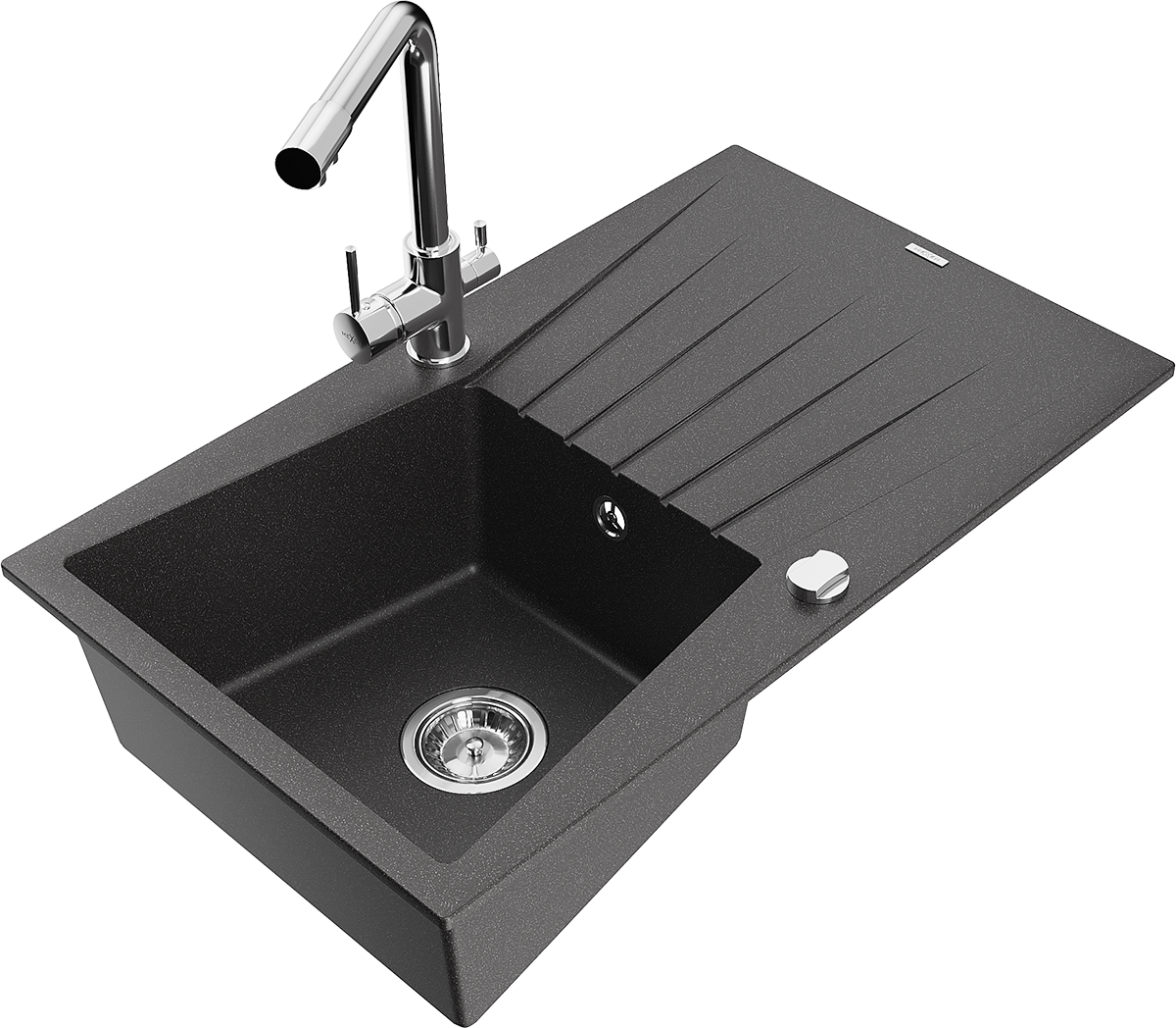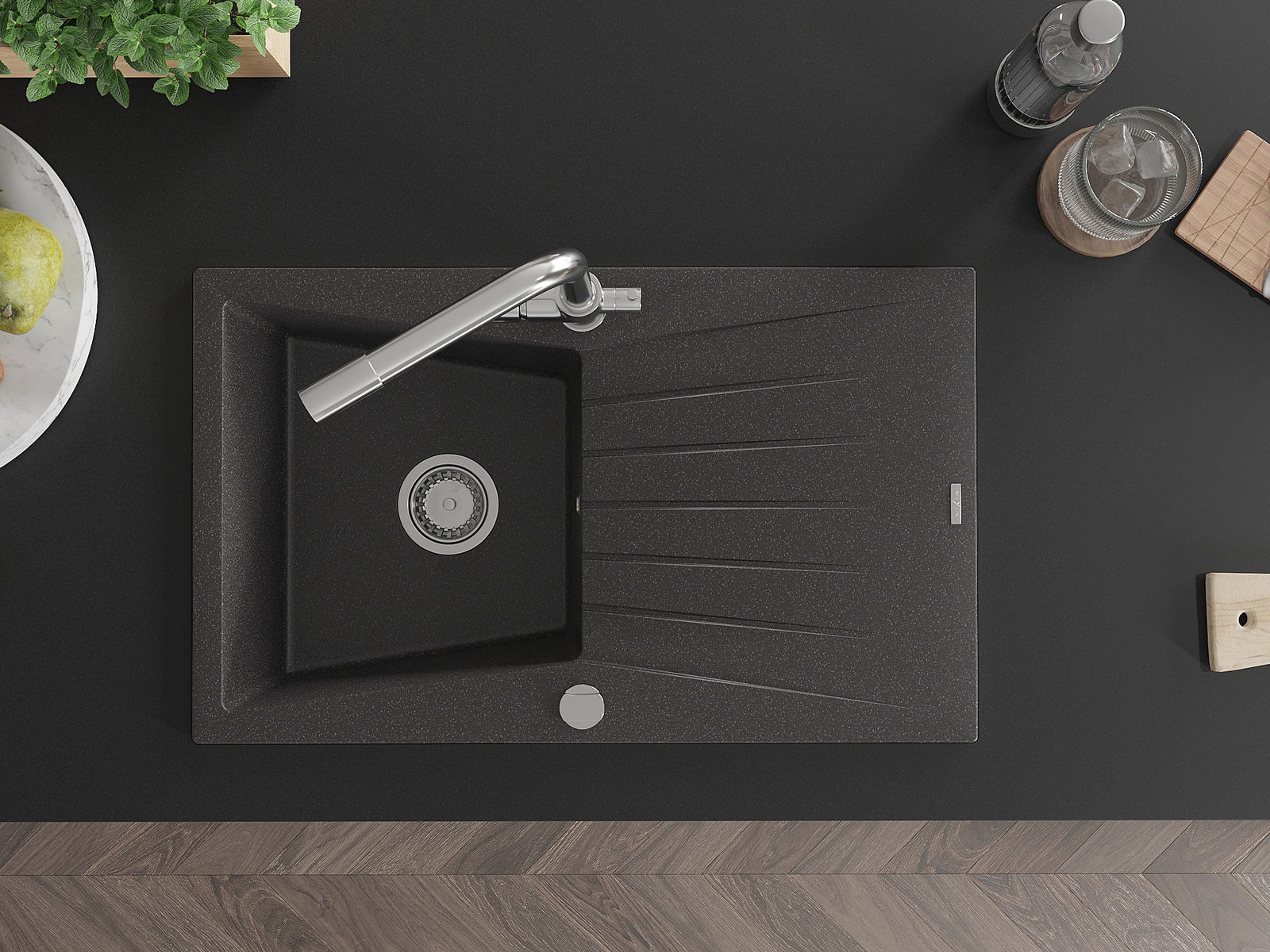 El fregadero está hecho de granito de alta calidad. Es un complemento elegante y, sobre todo, práctico para cualquier cocina, independientemente de su estilo. La alta calidad y durabilidad del granito aseguran un uso prolongado durante años.