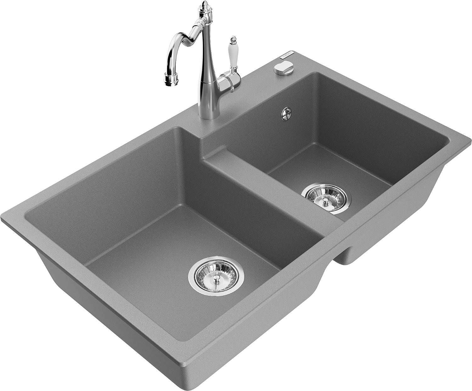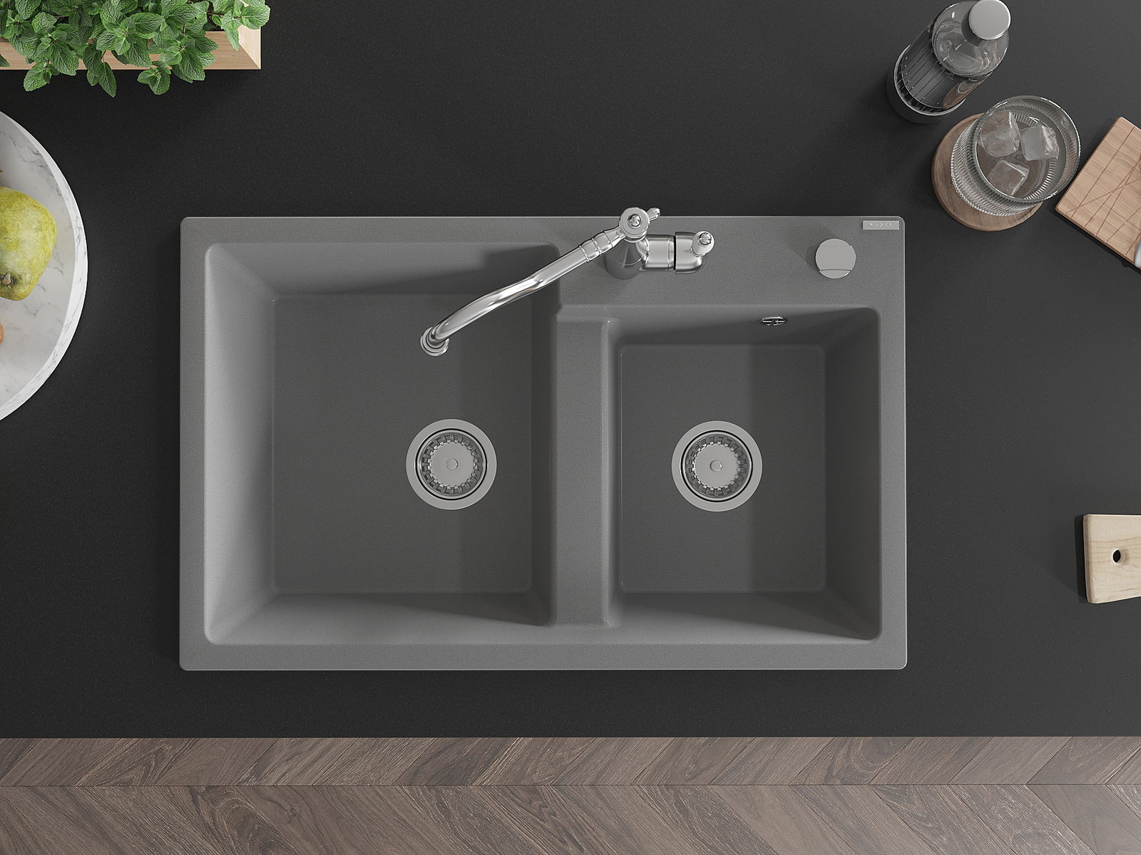 Mexen Tomas fregadero de granito de 2 senos con grifo de cocina Carla, gris - 6516-71-670700-00