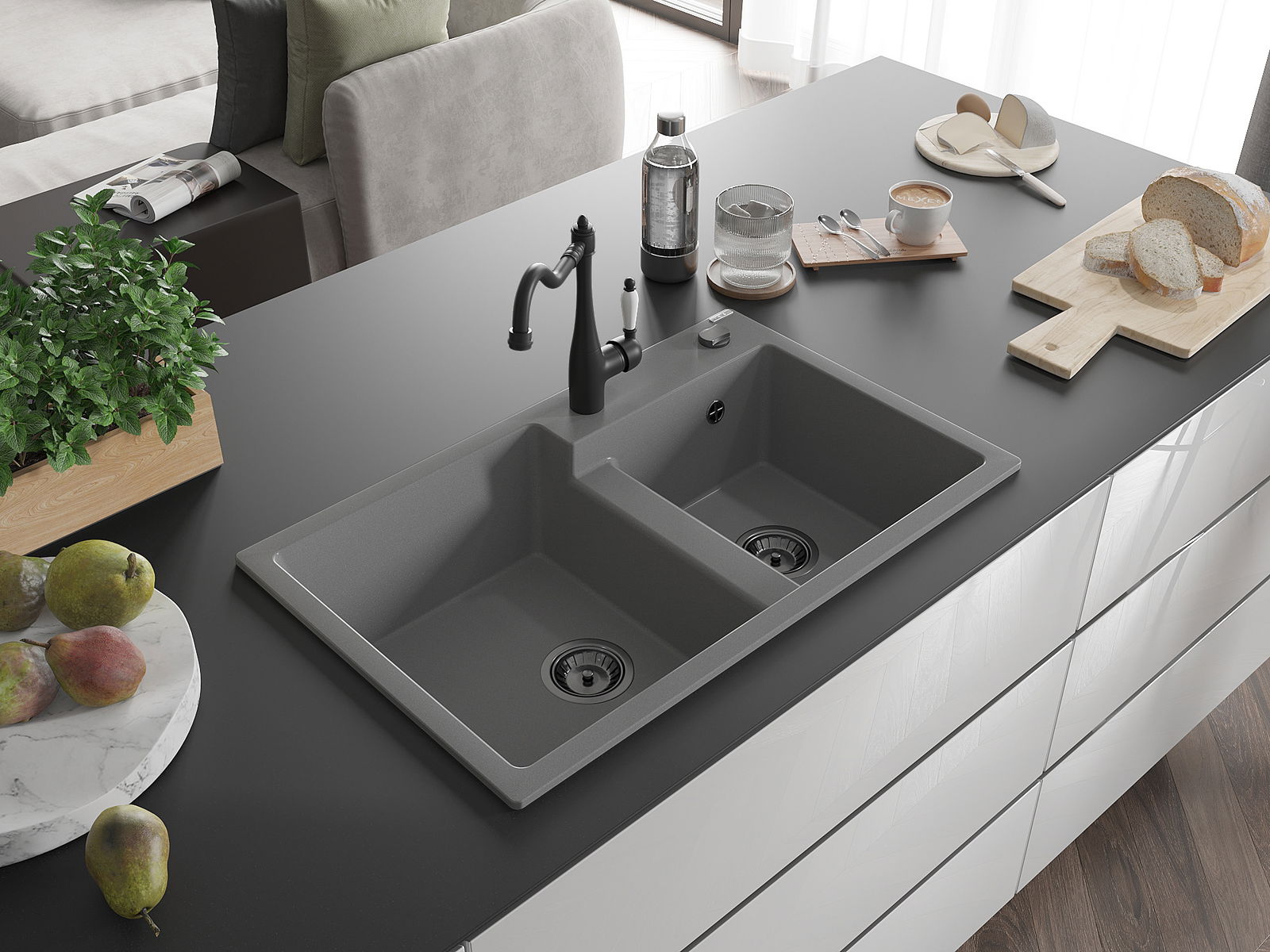 El fregadero está hecho de granito de alta calidad. Constituye un complemento elegante y, sobre todo, práctico para cualquier cocina, independientemente de su estilo. La alta calidad y durabilidad del granito aseguran un uso durante muchos años.