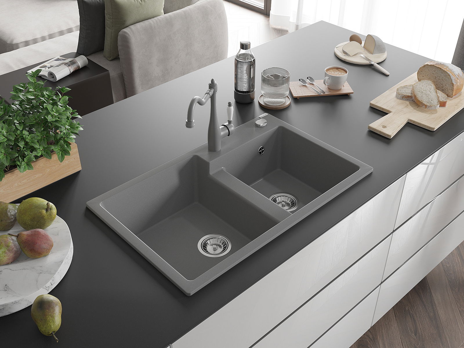El fregadero está hecho de granito de alta calidad. Constituye un complemento elegante y, sobre todo, práctico para cualquier cocina, independientemente de su estilo. La alta calidad y durabilidad del granito aseguran un uso durante muchos años.