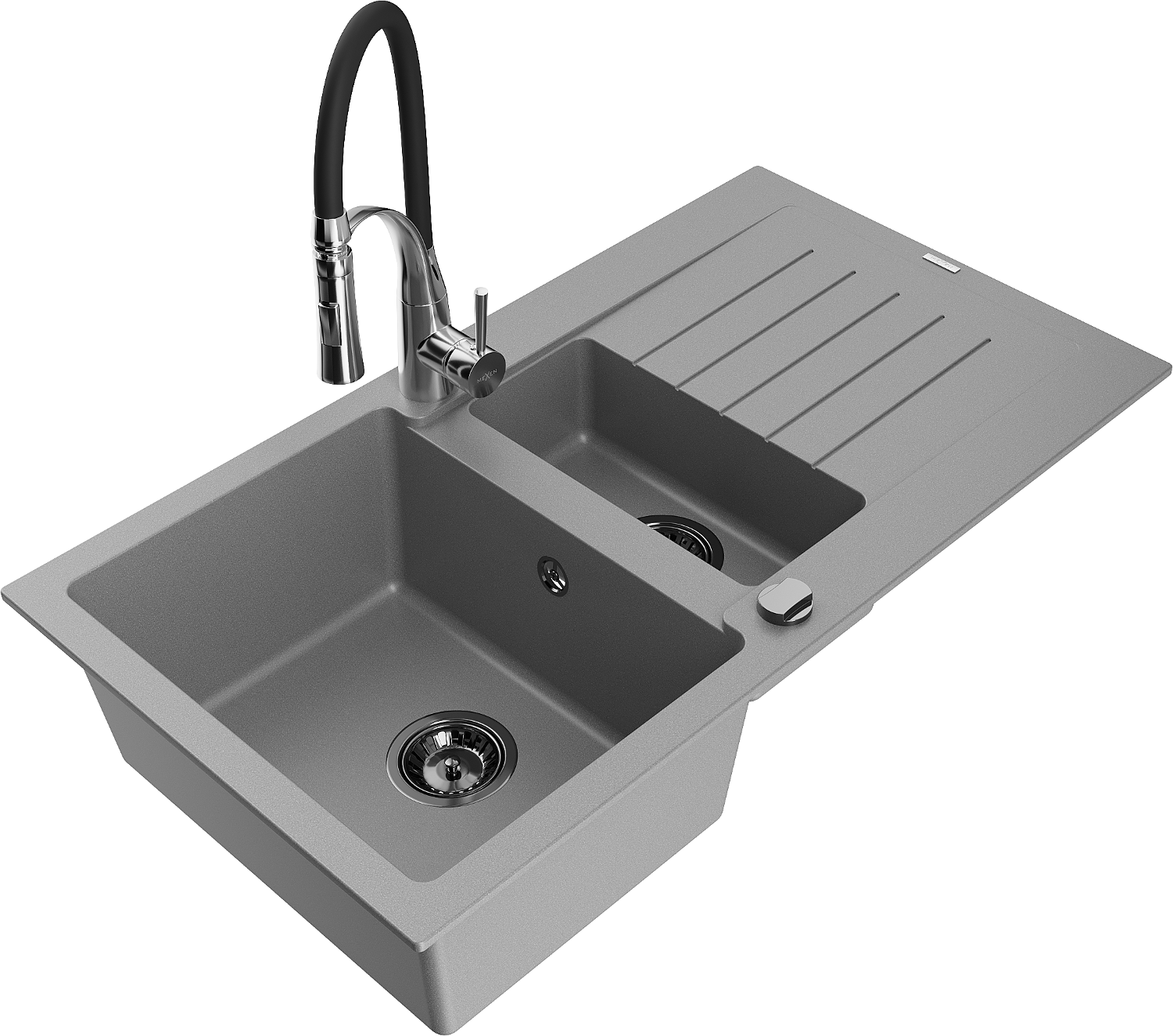Mexen Matias fregadero de granito 1,5 cuencos con escurridor y grifo de cocina Aster, gris - 6502-71-73450-07-B