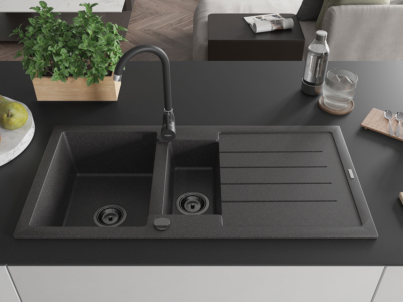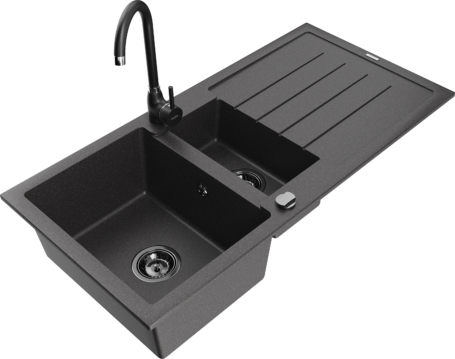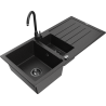 Mexen Andres fregadero de granito 1,5 cámaras con escurridor y grifo de cocina Telma, negro moteado - 6515-76-670200-70-B