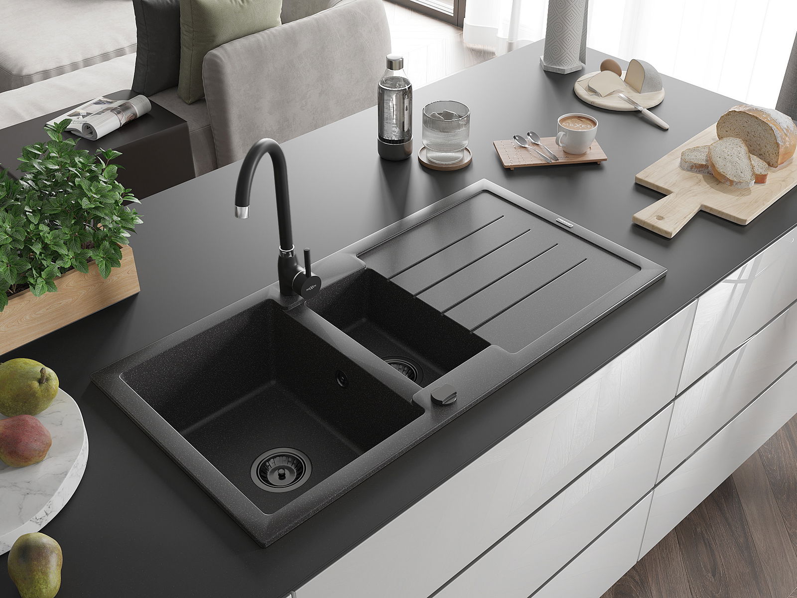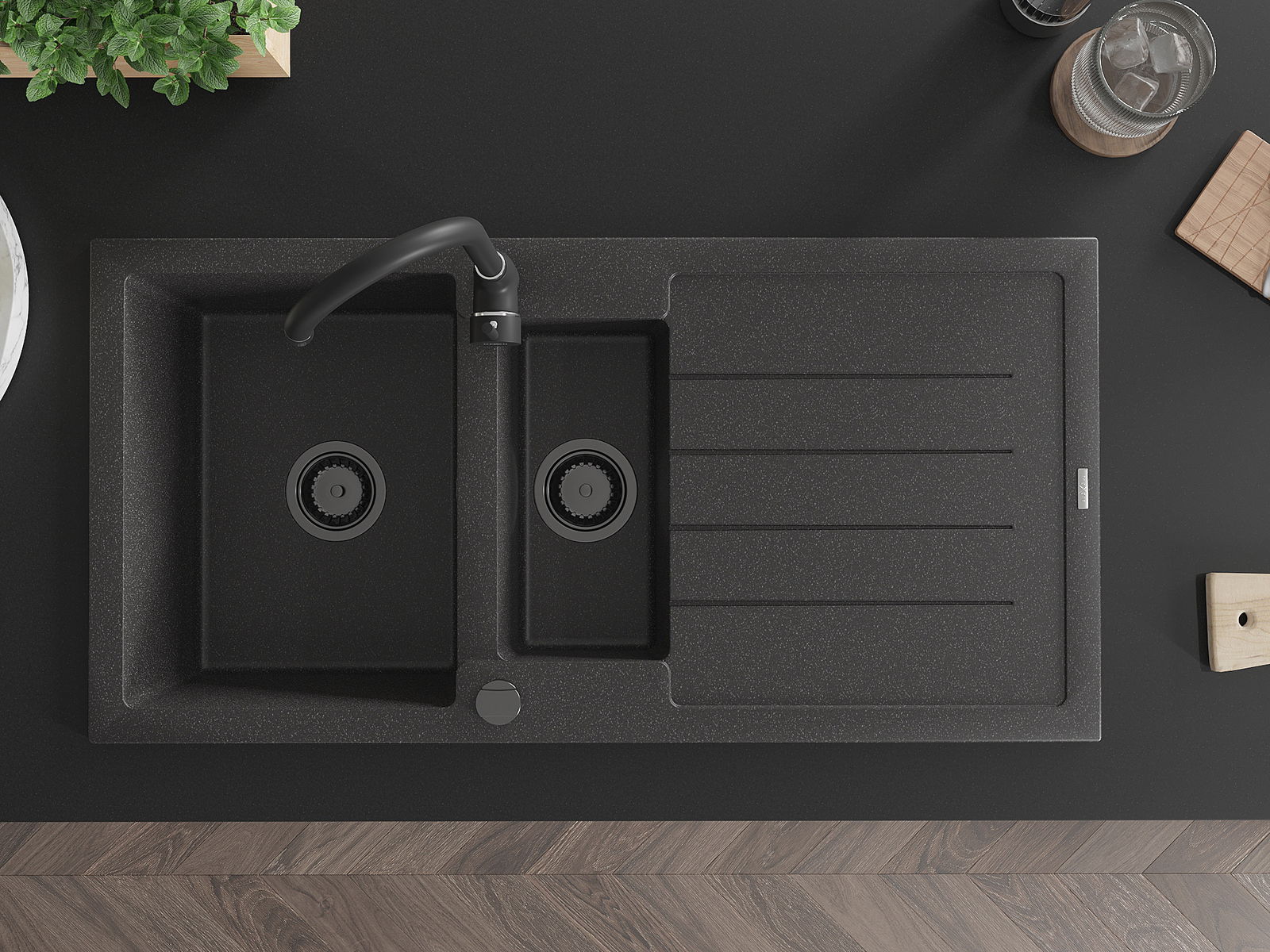 El fregadero está hecho de granito de alta calidad. Es un complemento elegante y, sobre todo, práctico para cualquier cocina, independientemente de su estilo. La alta calidad y durabilidad del granito aseguran un uso prolongado durante años.