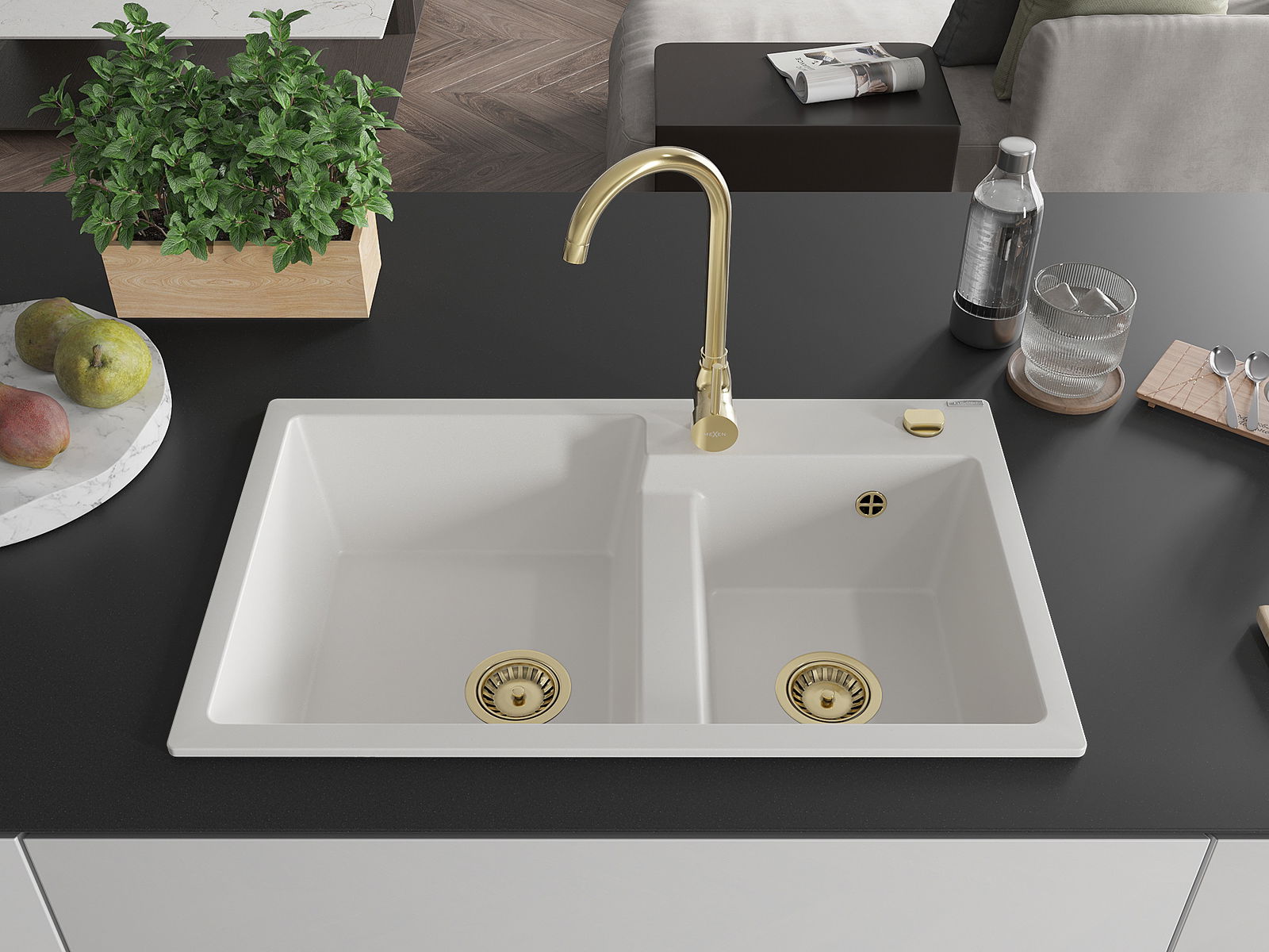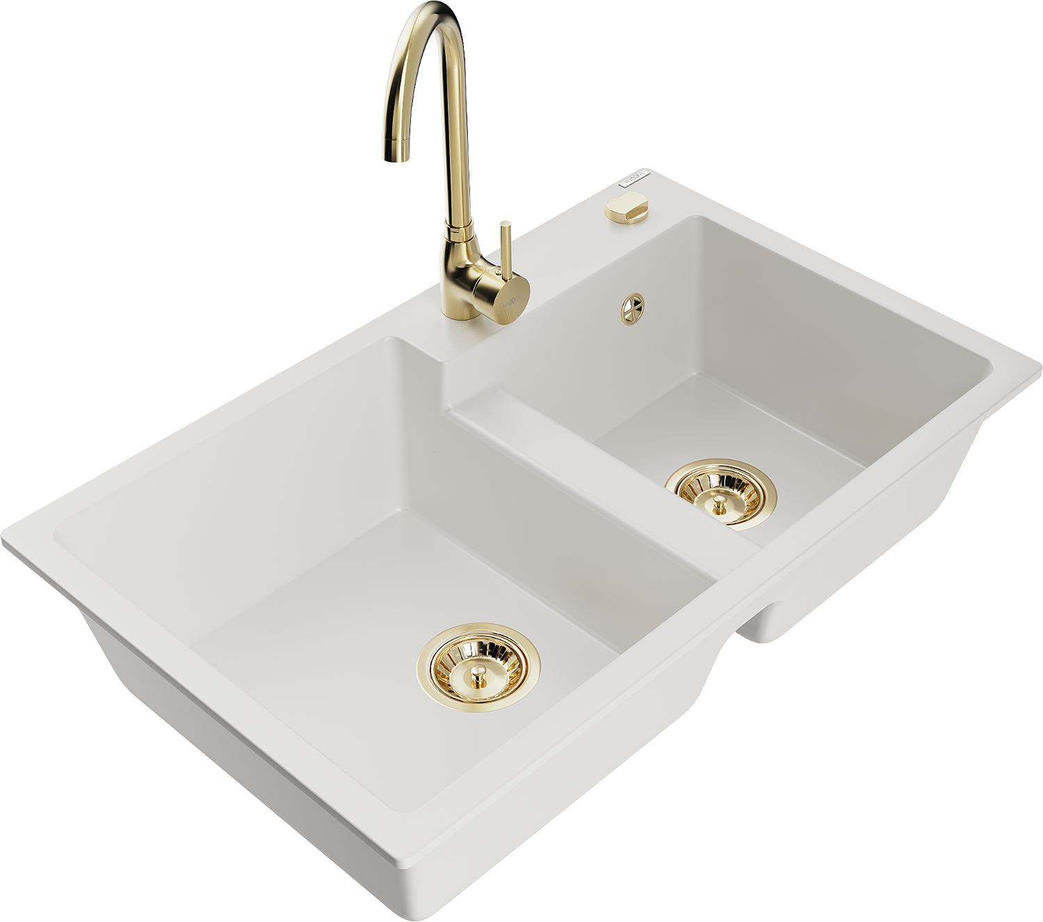 Mexen Tomas fregadero de granito de 2 senos con grifo de cocina Telma, blanco - 6516-20-670200-50