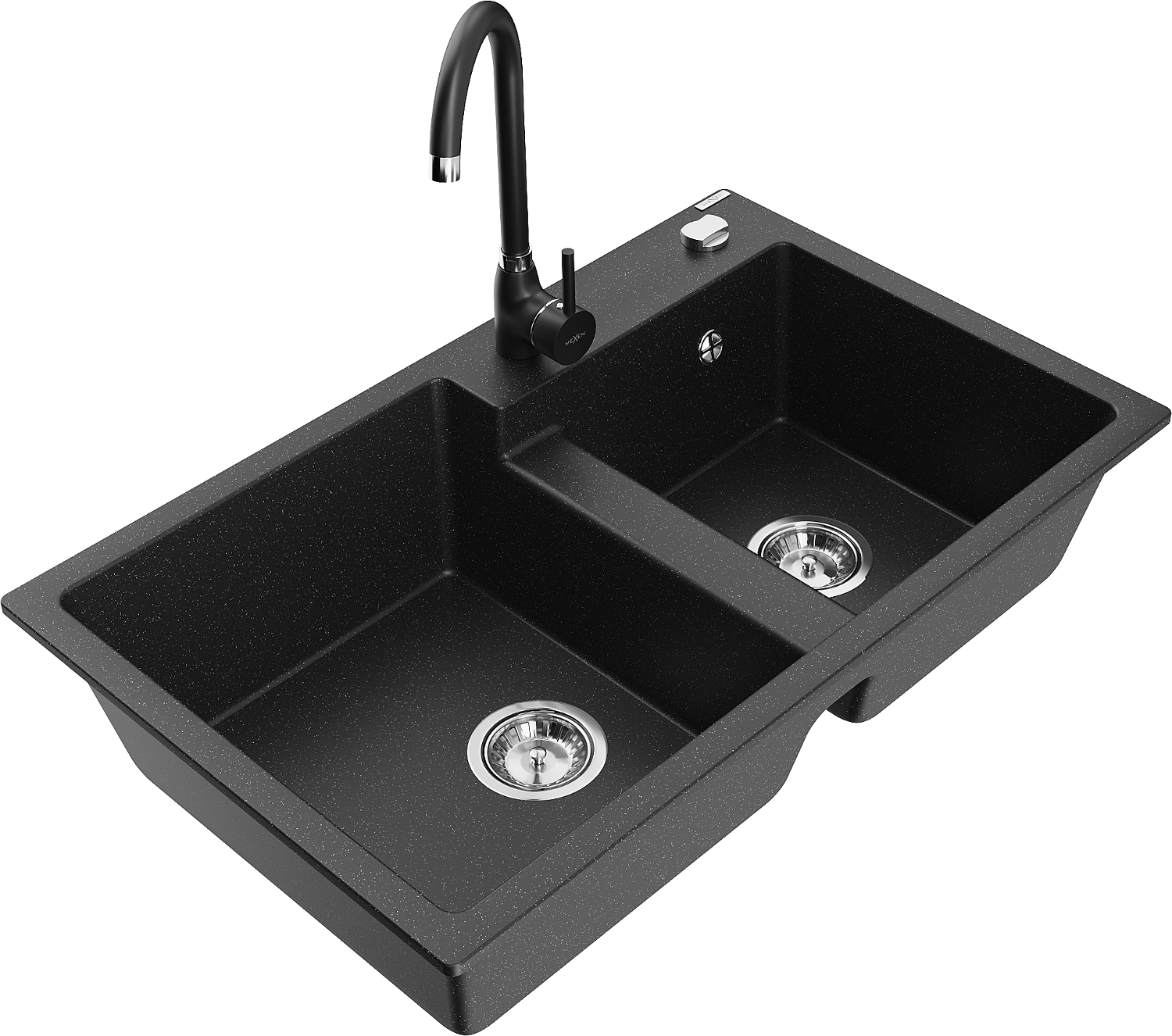 Mexen Tomas fregadero de granito de 2 compartimentos con grifo de cocina Telma, negro/plateado metálico - 6516-73-670200-70