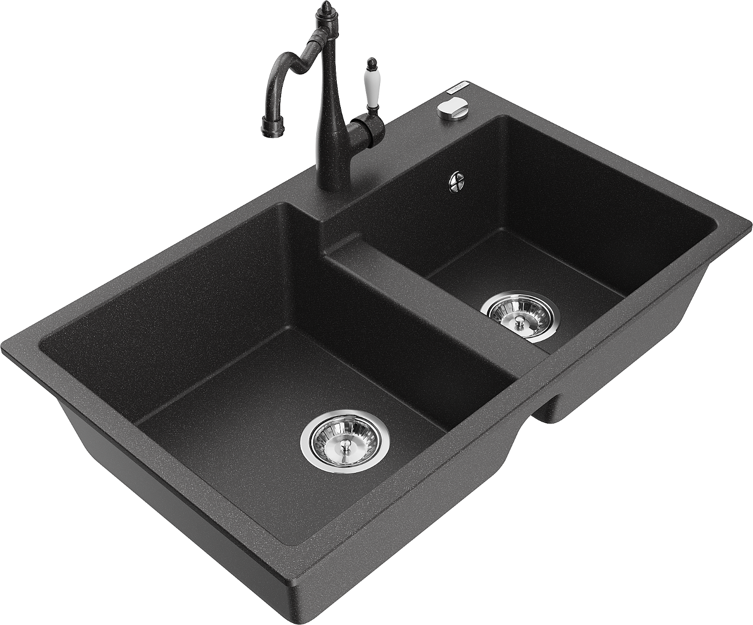 Mexen Tomas fregadero de granito de 2 senos con grifo de cocina Carla, negro moteado - 6516-76-670700-76