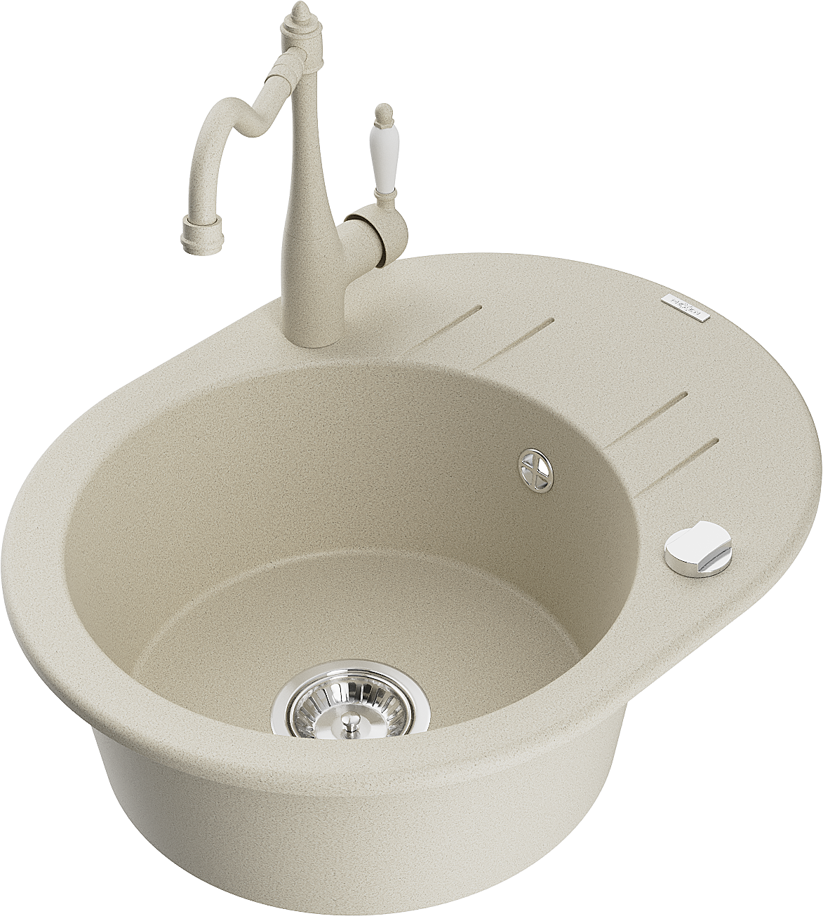 Mexen Kevin fregadero de granito de 1 cubeta con escurridor y grifo de cocina Carla, beige - 6517-69-670700-69