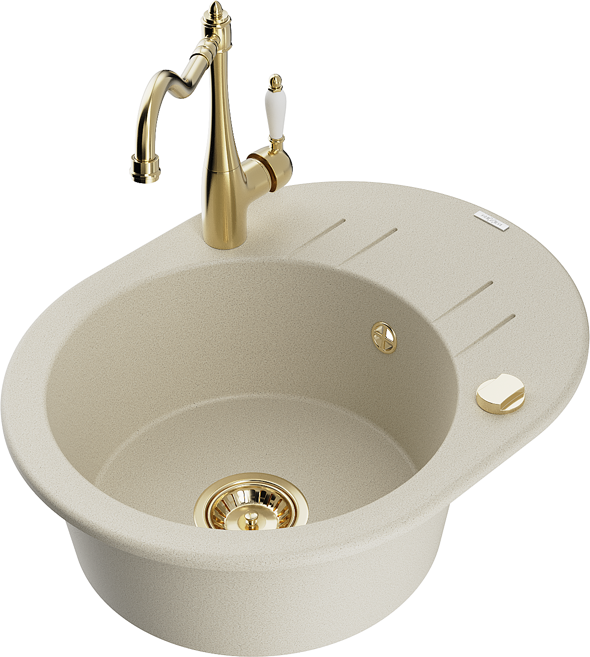Mexen Kevin fregadero de granito de 1 cubeta con escurridor y grifo de cocina Carla, beige - 6517-69-670700-50