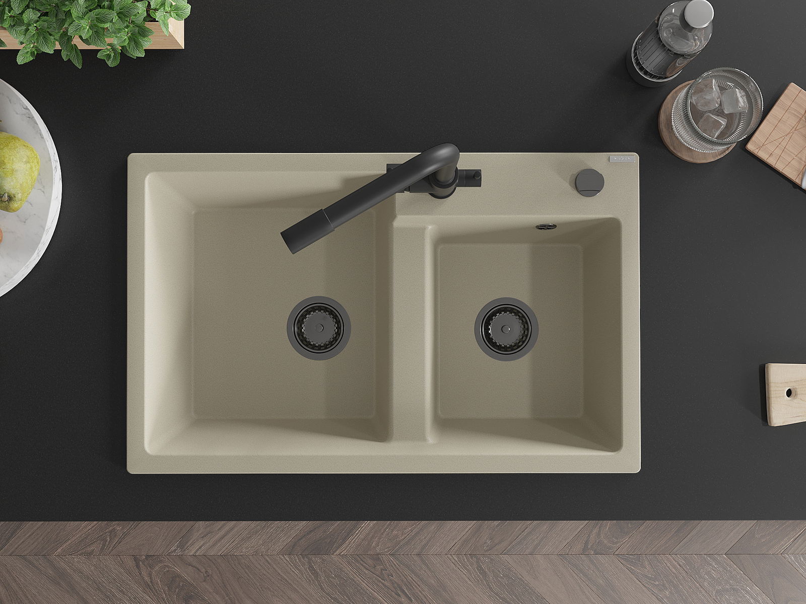 Mexen Tomas fregadero de granito de 2 compartimentos con grifo de cocina Duero, beige - 6516-69-671600-70