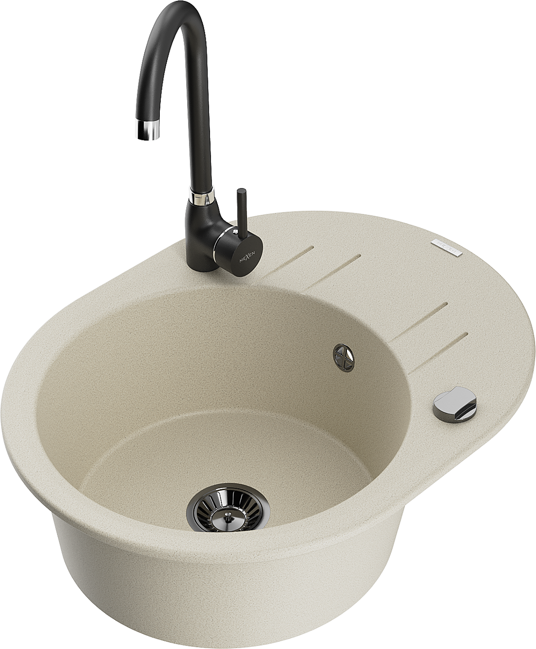 Mexen Kevin fregadero de granito de 1 cubeta con escurridor y grifo de cocina Telma, beige - 6517-69-670200-70