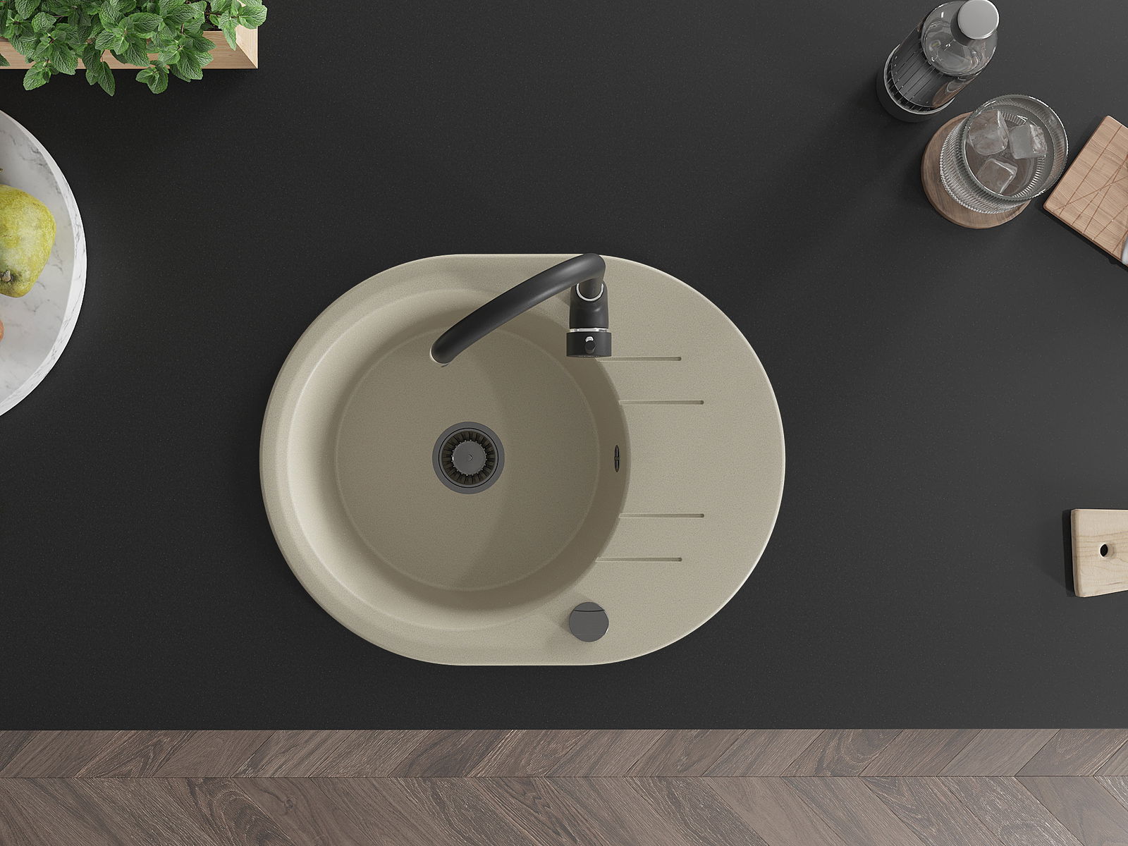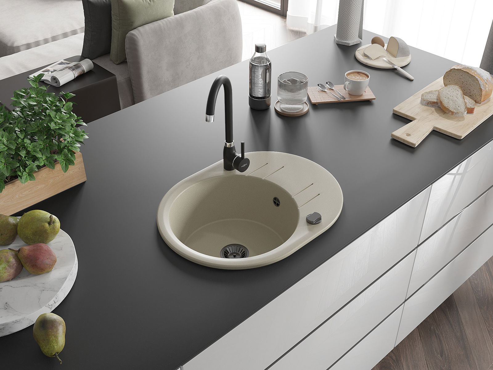 El fregadero está hecho de granito de alta calidad. Constituye un complemento elegante y, sobre todo, práctico para cualquier cocina, independientemente de su estilo. La alta calidad y durabilidad del granito aseguran un uso durante muchos años.