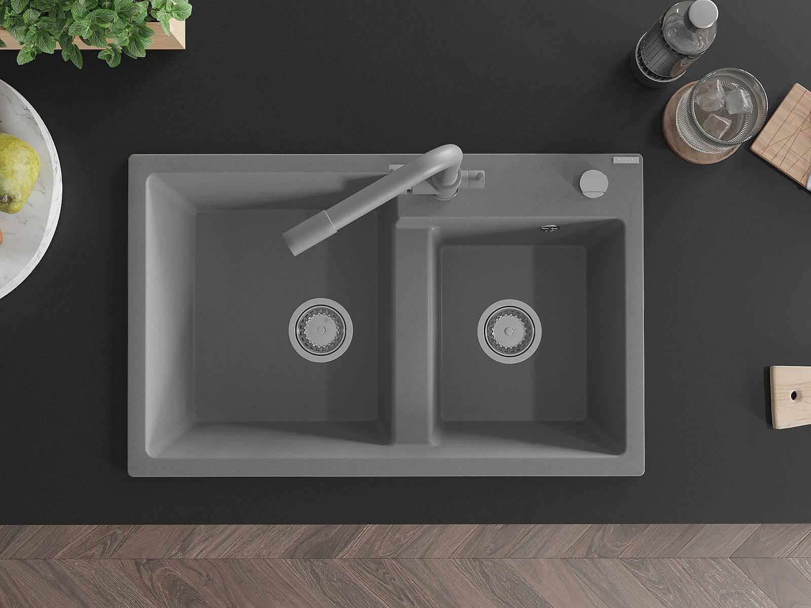 Mexen Tomas fregadero de granito de 2 senos con grifo de cocina Duero, gris - 6516-71-671600-71