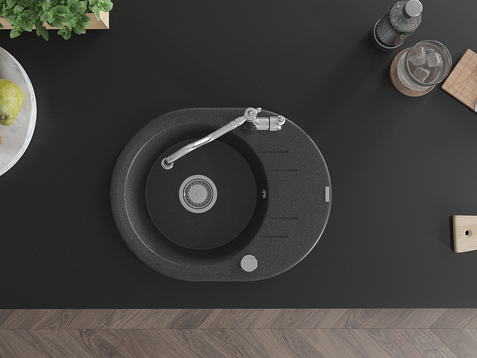 El fregadero está hecho de granito de alta calidad. Constituye un complemento elegante y, sobre todo, práctico para cualquier cocina, independientemente de su estilo. La alta calidad y durabilidad del granito aseguran un uso durante muchos años.