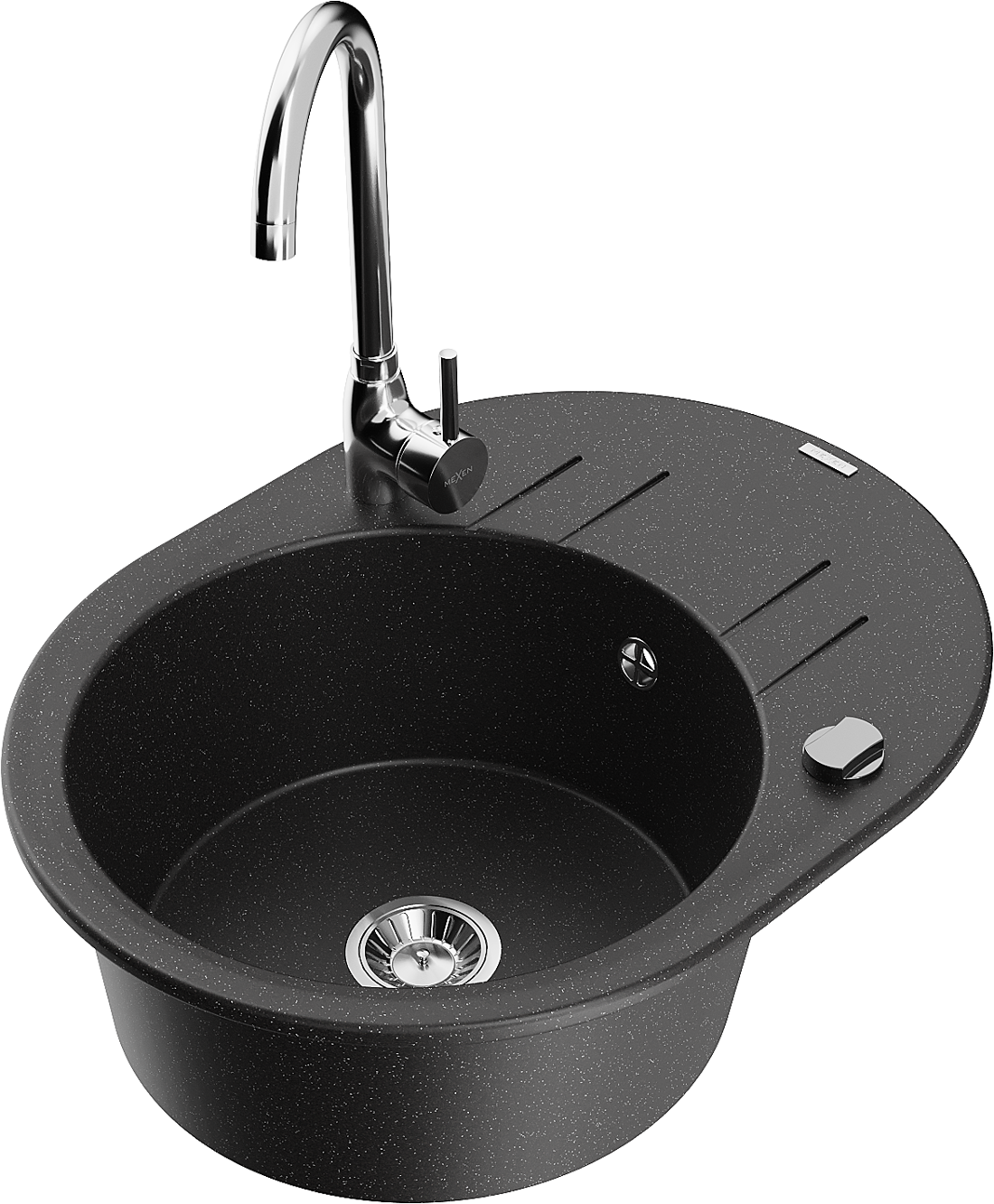 Mexen Kevin fregadero de granito de 1 cubeta con escurridor y grifo de cocina Telma, negro/plata metálico - 6517-73-670200-00