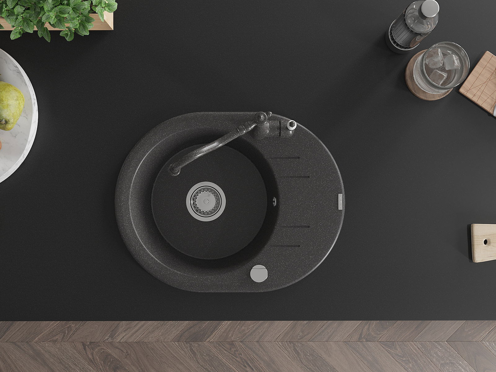 El fregadero está hecho de granito de alta calidad. Constituye un complemento elegante y, sobre todo, práctico para cualquier cocina, independientemente de su estilo. La alta calidad y durabilidad del granito aseguran un uso durante muchos años.