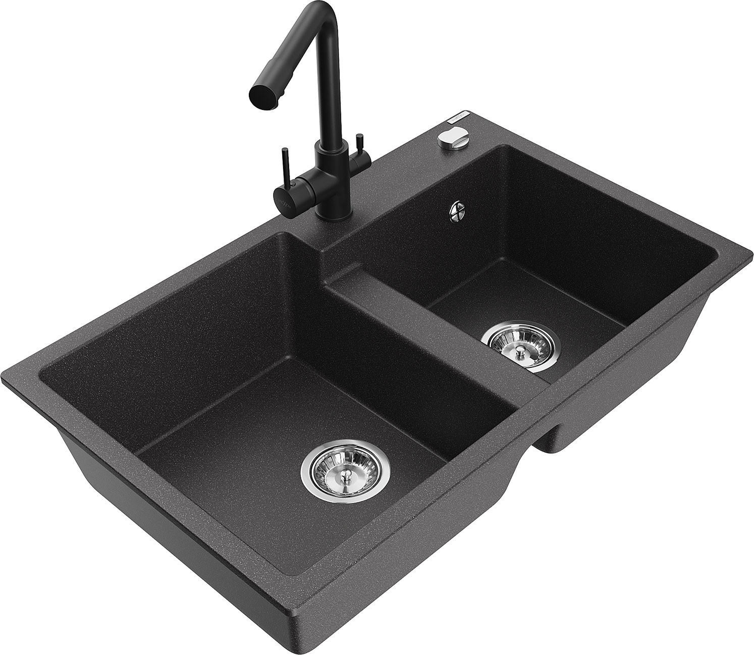 Mexen Tomas fregadero de granito de 2 cubetas con grifo de cocina Duero, negro moteado - 6516-76-671600-70