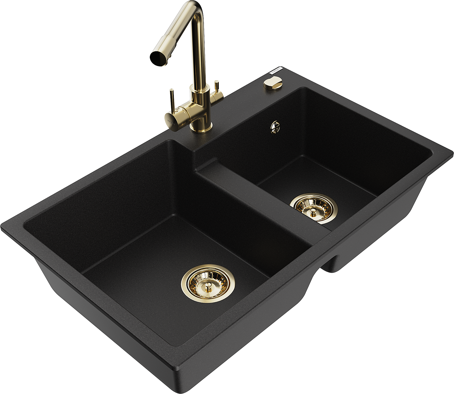 Mexen Tomas fregadero de granito de 2 compartimentos con grifo de cocina Duero, negro - 6516-77-671600-50
