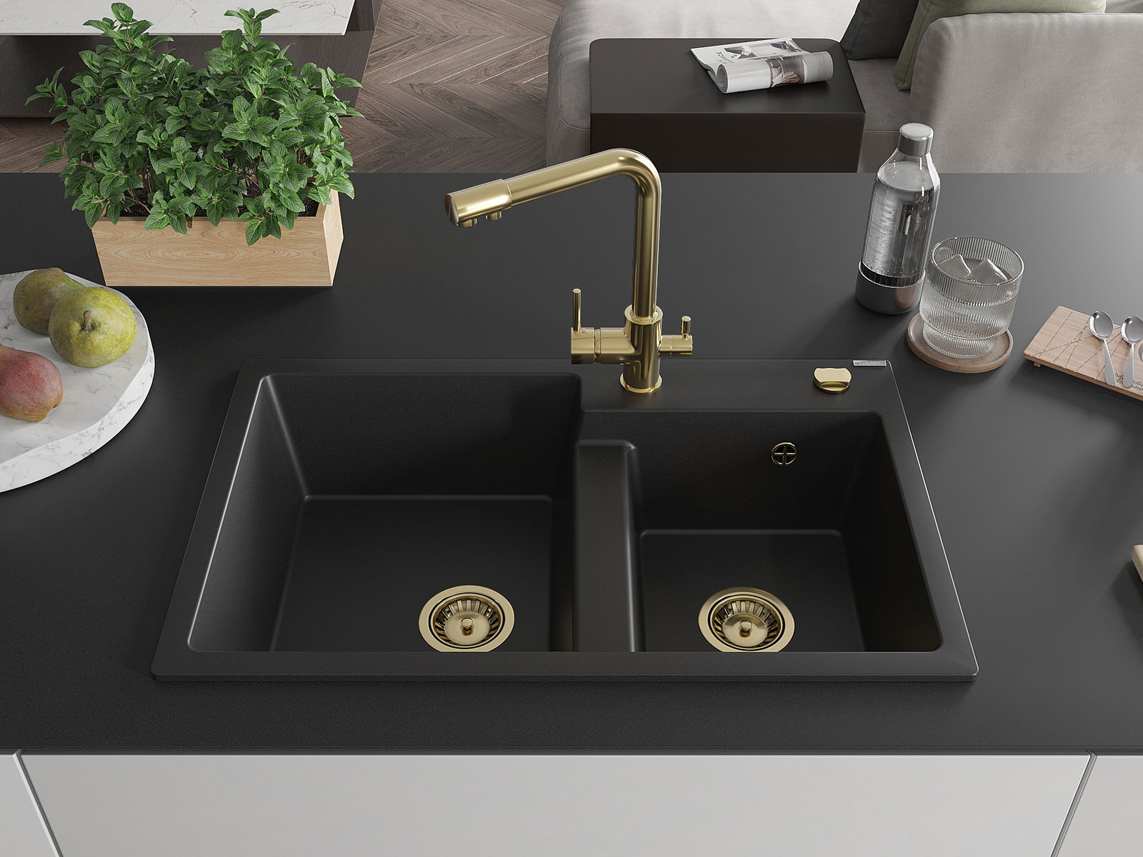 El fregadero está hecho de granito de alta calidad. Constituye un complemento elegante y, sobre todo, práctico para cualquier cocina, independientemente de su estilo. La alta calidad y durabilidad del granito aseguran un uso durante muchos años.