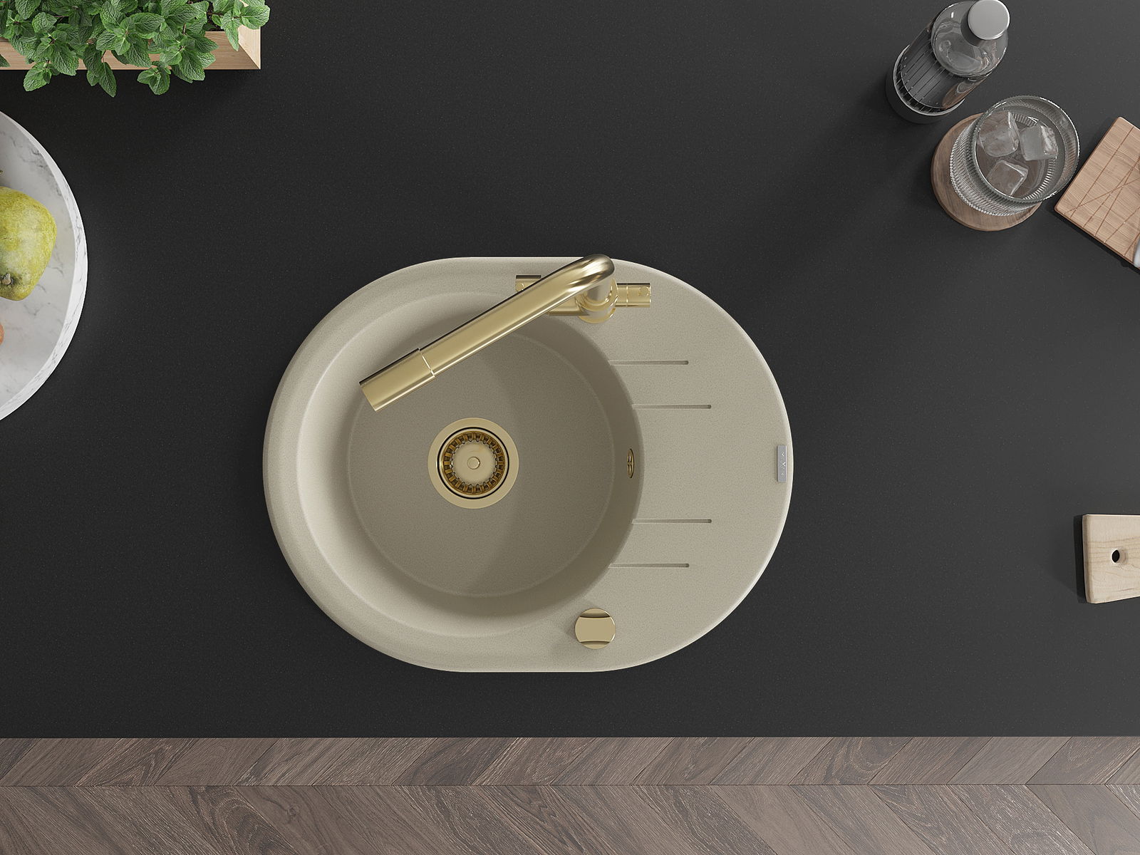 Mexen Kevin fregadero de granito de 1 cubeta con escurridor y grifo de cocina Duero, beige - 6517-69-671600-50