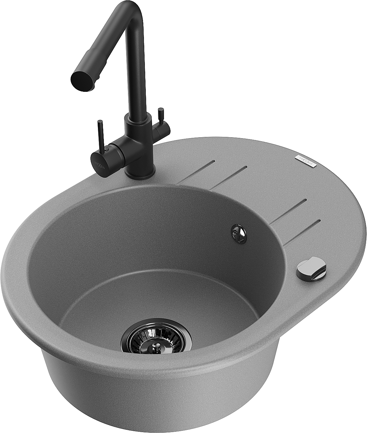 Mexen Kevin fregadero de granito de 1 cubeta con escurridor y grifo de cocina Duero, gris - 6517-71-671600-70-B