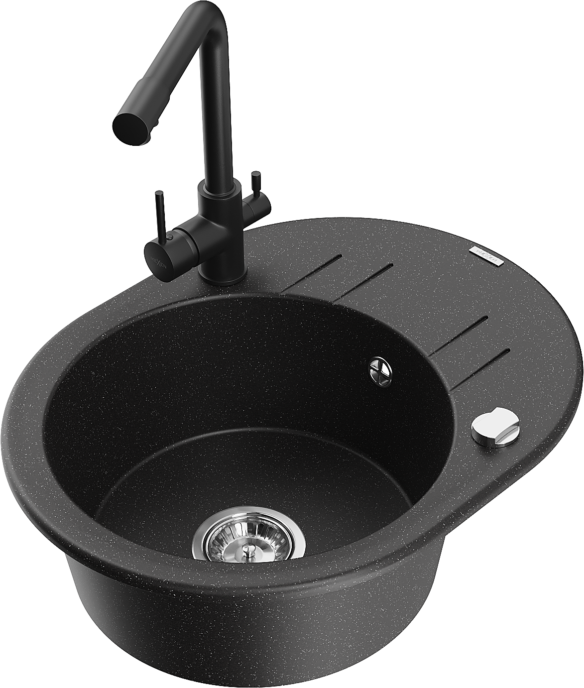 Mexen Kevin fregadero de granito de 1 seno con escurridor y grifo de cocina Duero, negro/plateado metálico - 6517-73-671600-70