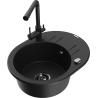 Mexen Kevin fregadero de granito de 1 tazón con escurridor y grifo de cocina Duero, negro/metalizado plateado
