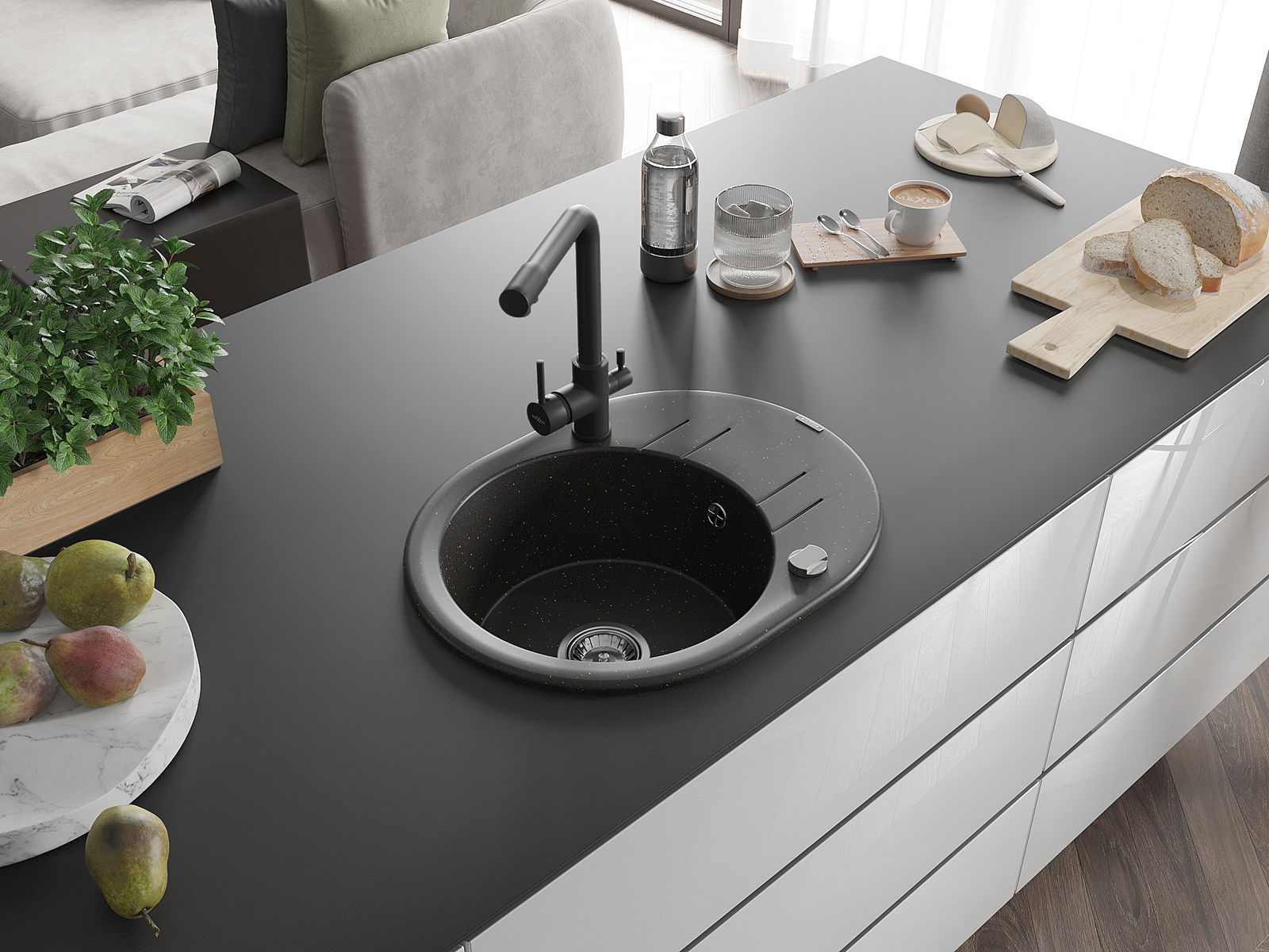 El fregadero está hecho de granito de alta calidad. Constituye un complemento elegante y, sobre todo, práctico para cualquier cocina, independientemente de su estilo. La alta calidad y durabilidad del granito aseguran un uso durante muchos años.