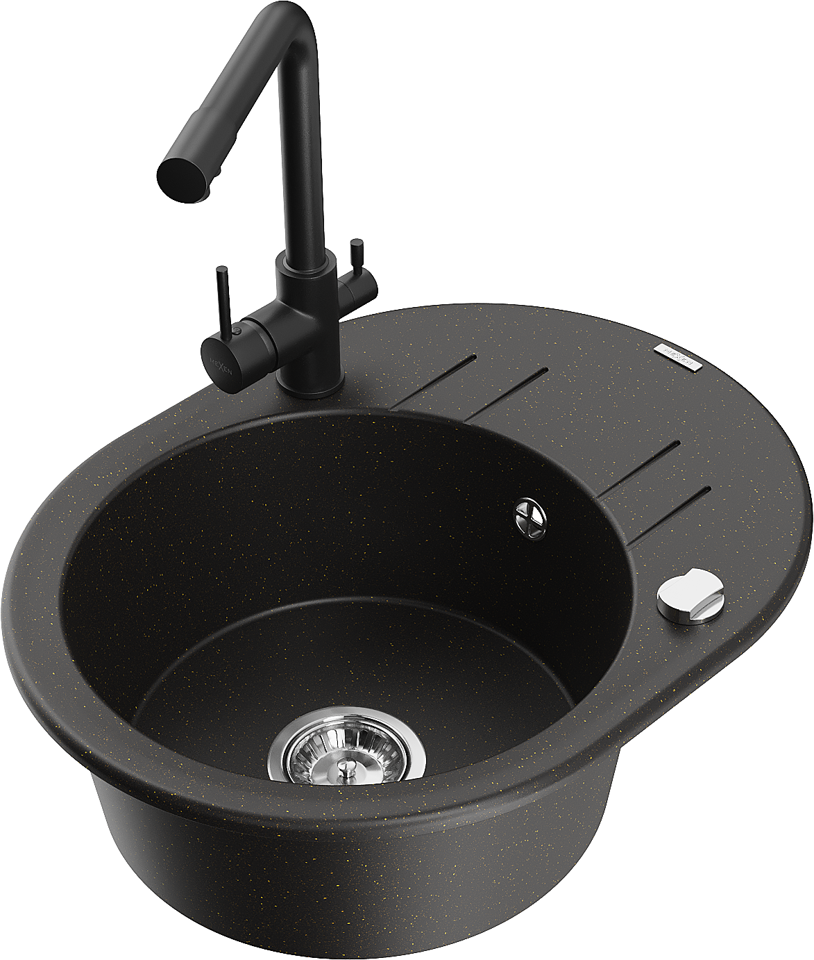 Mexen Kevin fregadero de granito 1-cámara con escurridor y grifo de cocina Duero, negro/dorado metalizado - 6517-75-671600-70