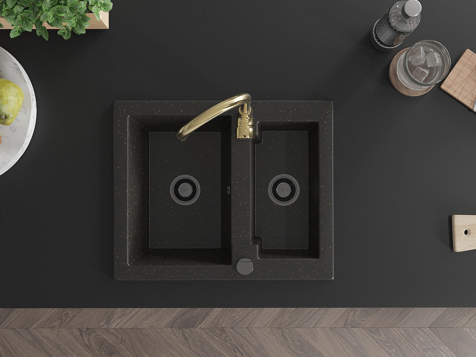 El fregadero está hecho de granito de alta calidad. Es un complemento elegante y, sobre todo, práctico para cualquier cocina, independientemente de su estilo. La alta calidad y durabilidad del granito aseguran un uso prolongado durante años.