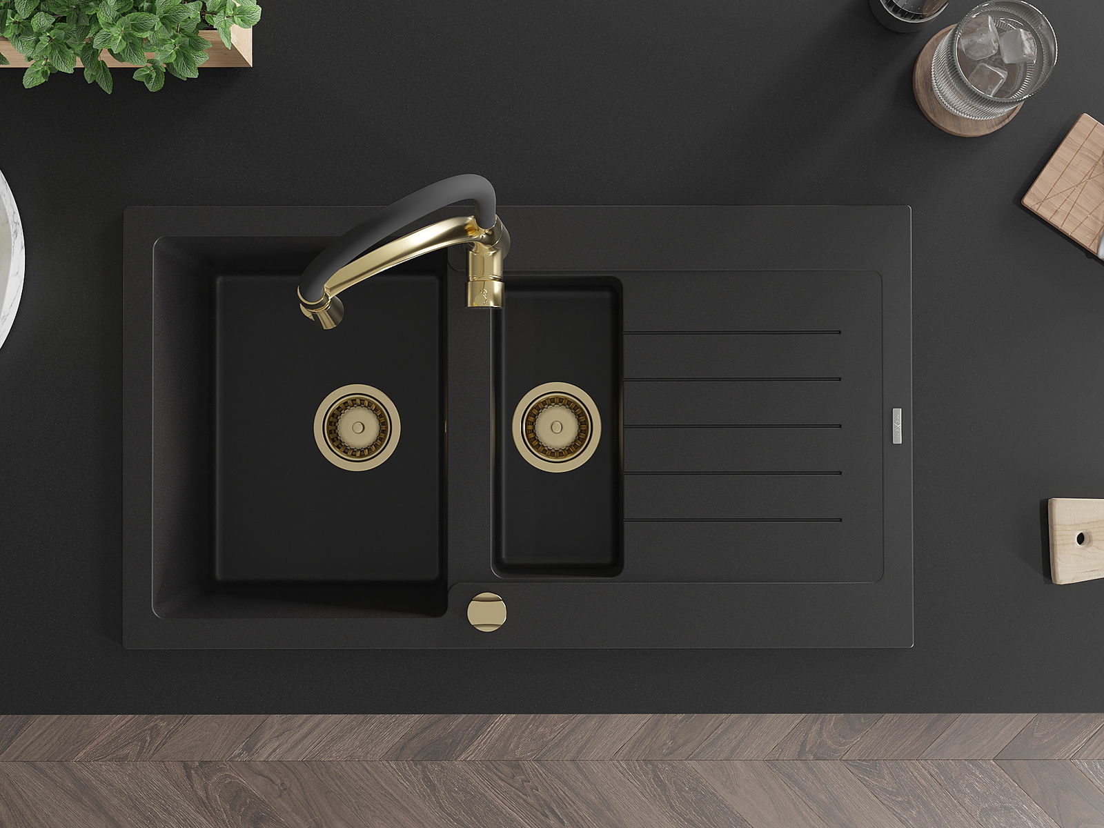 El fregadero está hecho de granito de alta calidad. Constituye un complemento elegante y, sobre todo, práctico para cualquier cocina, independientemente de su estilo. La alta calidad y durabilidad del granito aseguran un uso durante muchos años.