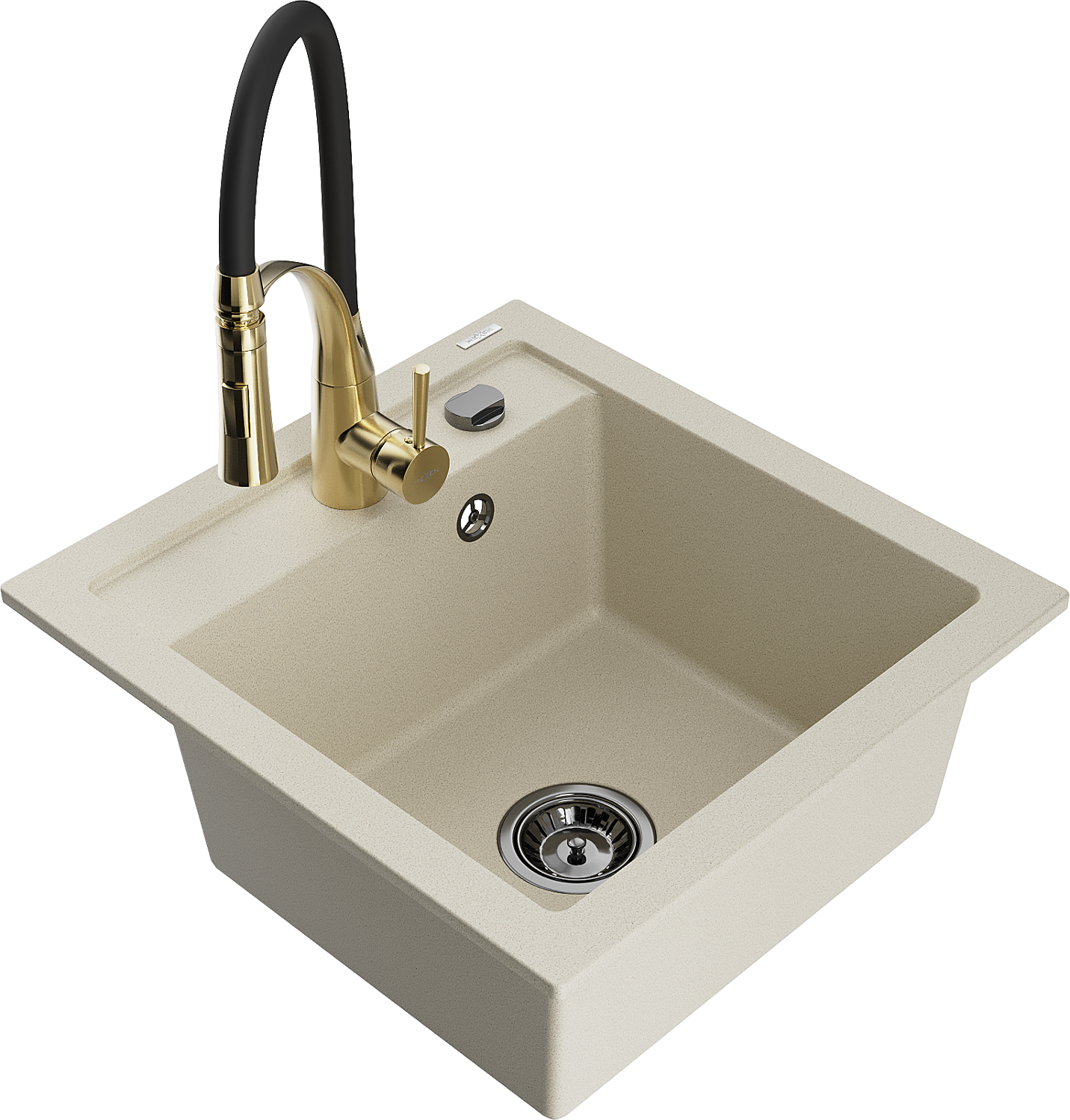 Mexen Vito fregadero de granito de 1 cubeta con grifo de cocina Aster, beige - 6503-69-73450-57-B